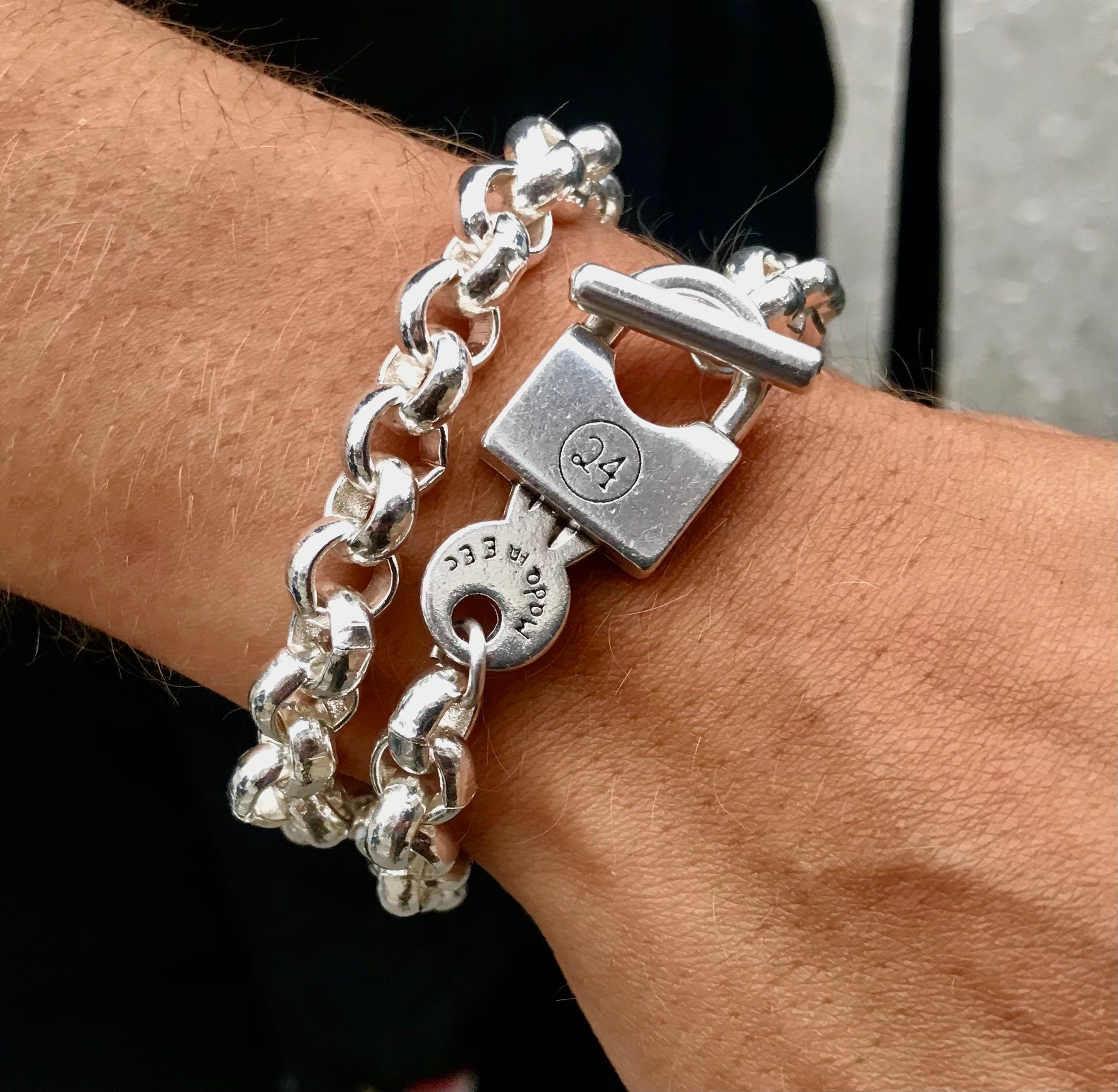 Chunky Silber Rolo Kettenarmband, Custom Padlock Verschluss