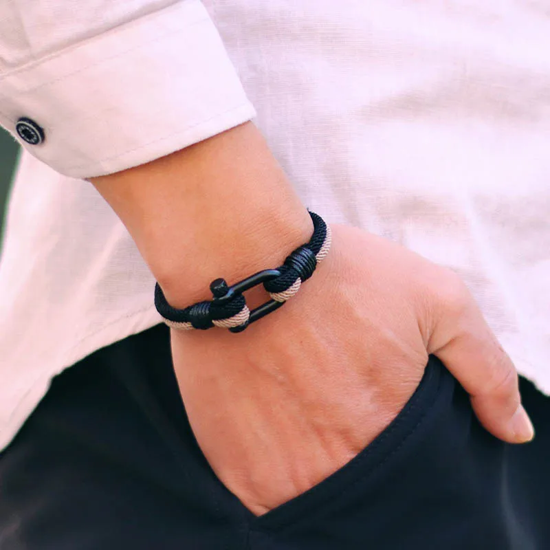 Neu in Männer Armband Seil zweifarbig Makramee Armband Edelstahl Verschluss passend stapelbar B...
