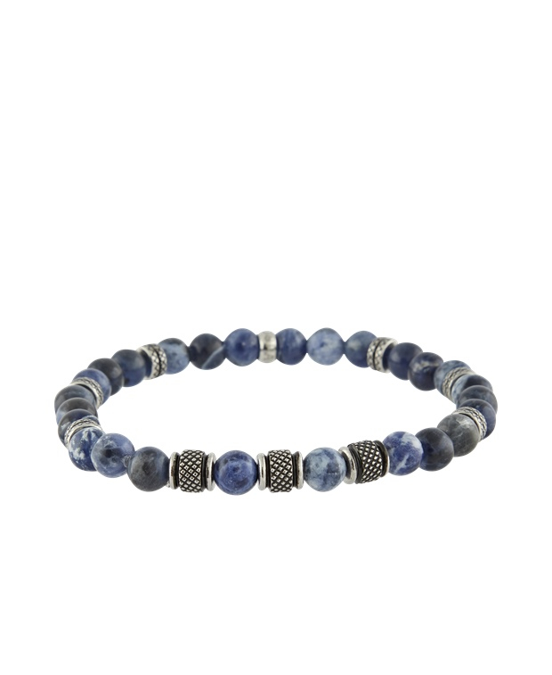 Elastisches Armband mit Sodalithsteinen, Bildsteinen und Edelstahlperle und Stoppern. Edelstahlstopp...