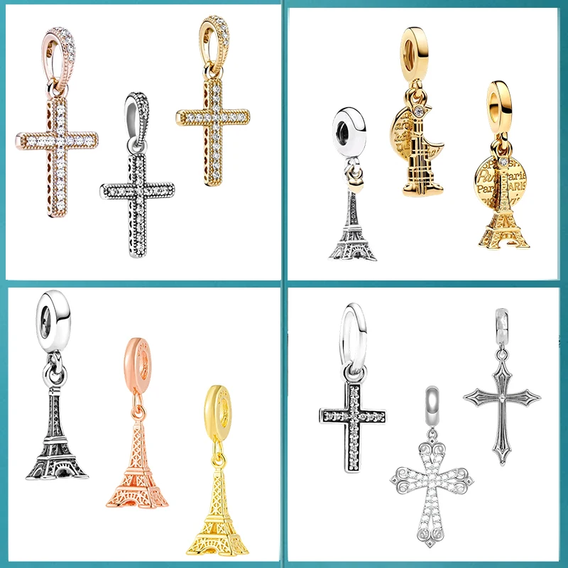 Heißer Verkauf klassische funkelnde Kreuz & Paris Eiffelturm Diamant Doppel baumeln Charm ...
