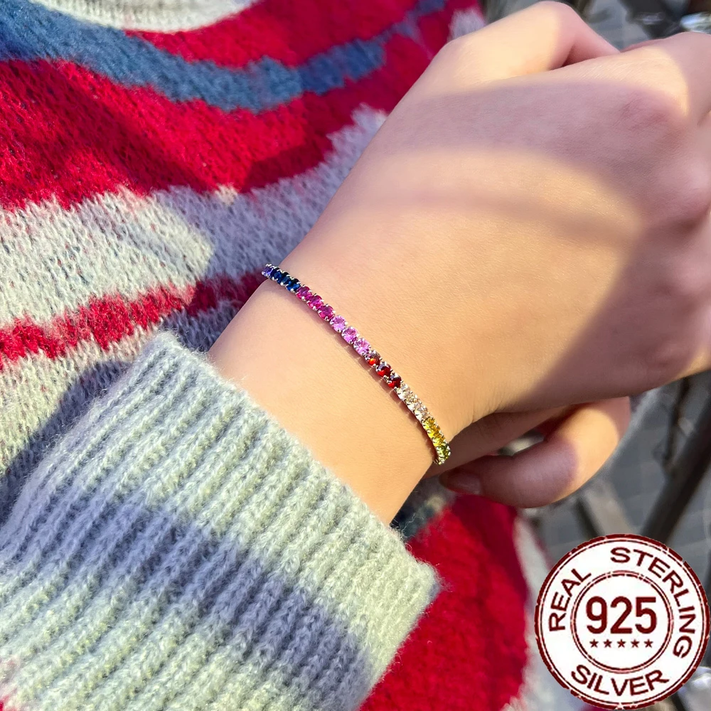 CWWZircons Sterling Silber 925, mehrfarbig, Regenbogen-Turmalin, Tenniskette, Armbänder fü...