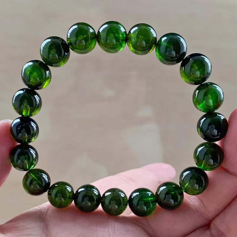 Natürliches grünes Turmalin-Quarz-Armband mit klaren runden Perlen, 9 mm, brasilianischer ...