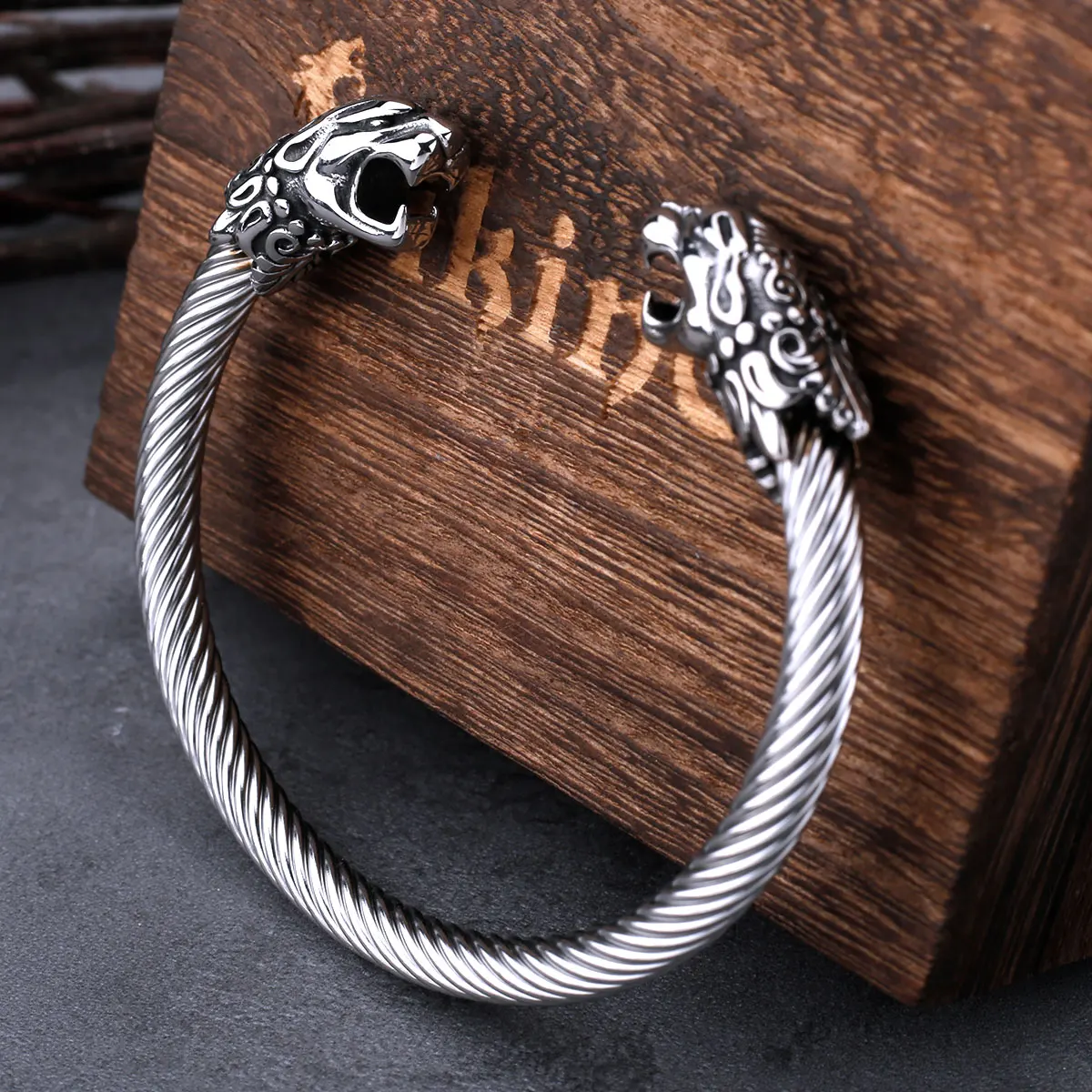 Edelstahl Nordic Drachen Kopf Armband Männer Mode Hip Hop Biker Armband Manschette Viking Arm R...
