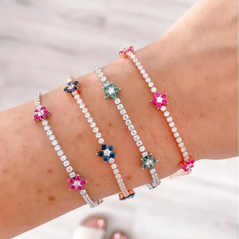 Luxus Regenbogen CZ Blume Tennis Kette Armband für Frauen M&au...