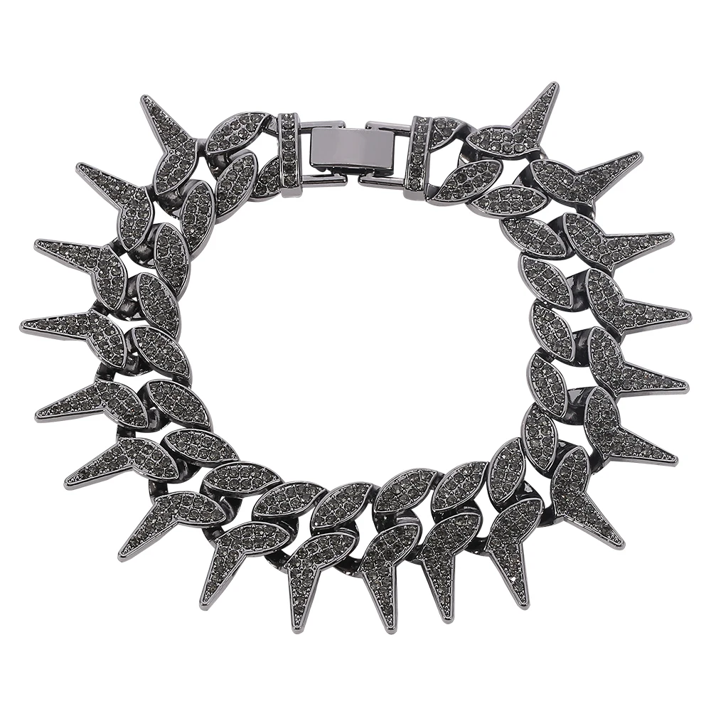 Hip Hop Shiny Spike Cuban Link Kette Armbänder Frauen Männer Strass Iced Out Kette Armband...