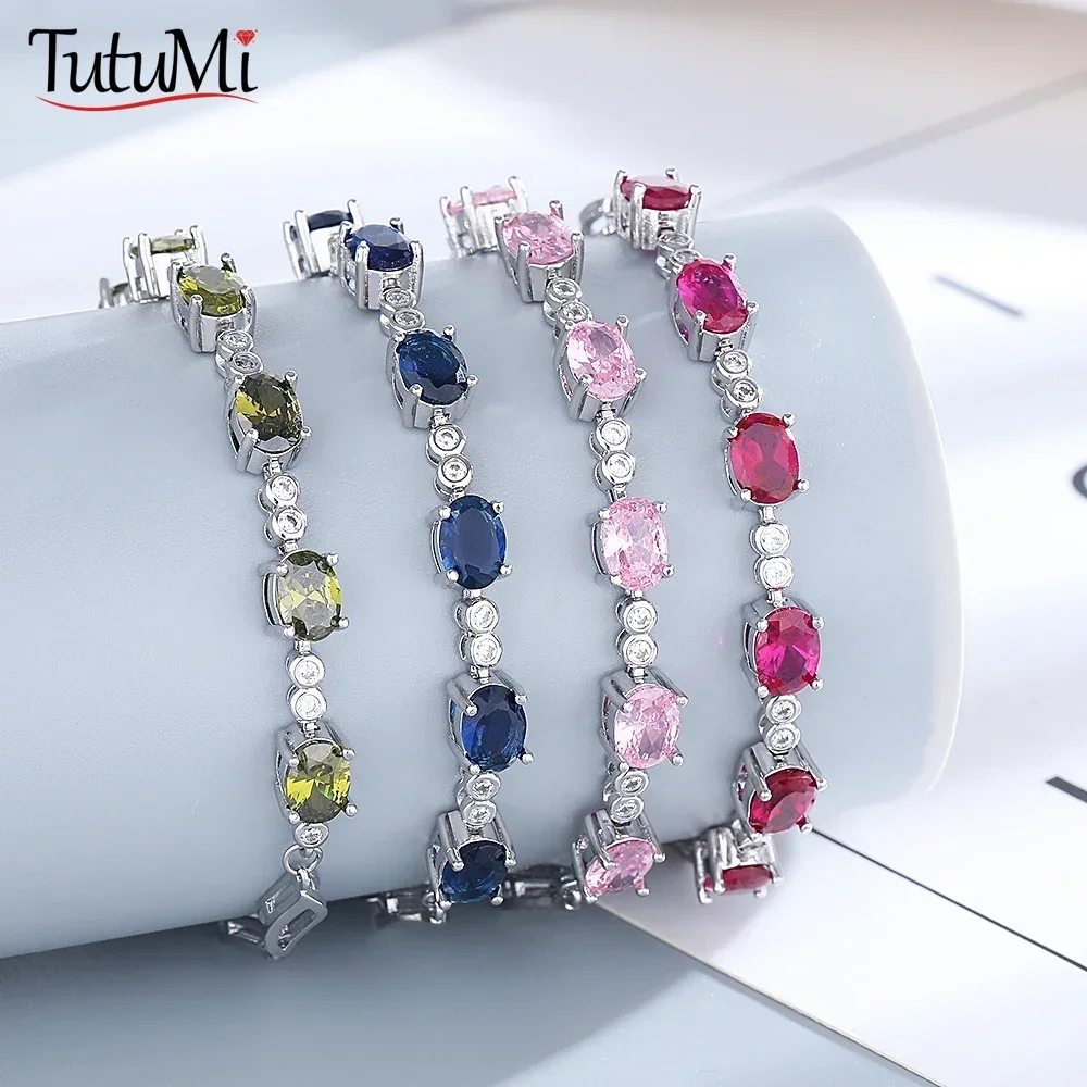Weibliche Topas-Armbänder aus 925er-Sterlingsilber, tiefes Sap...