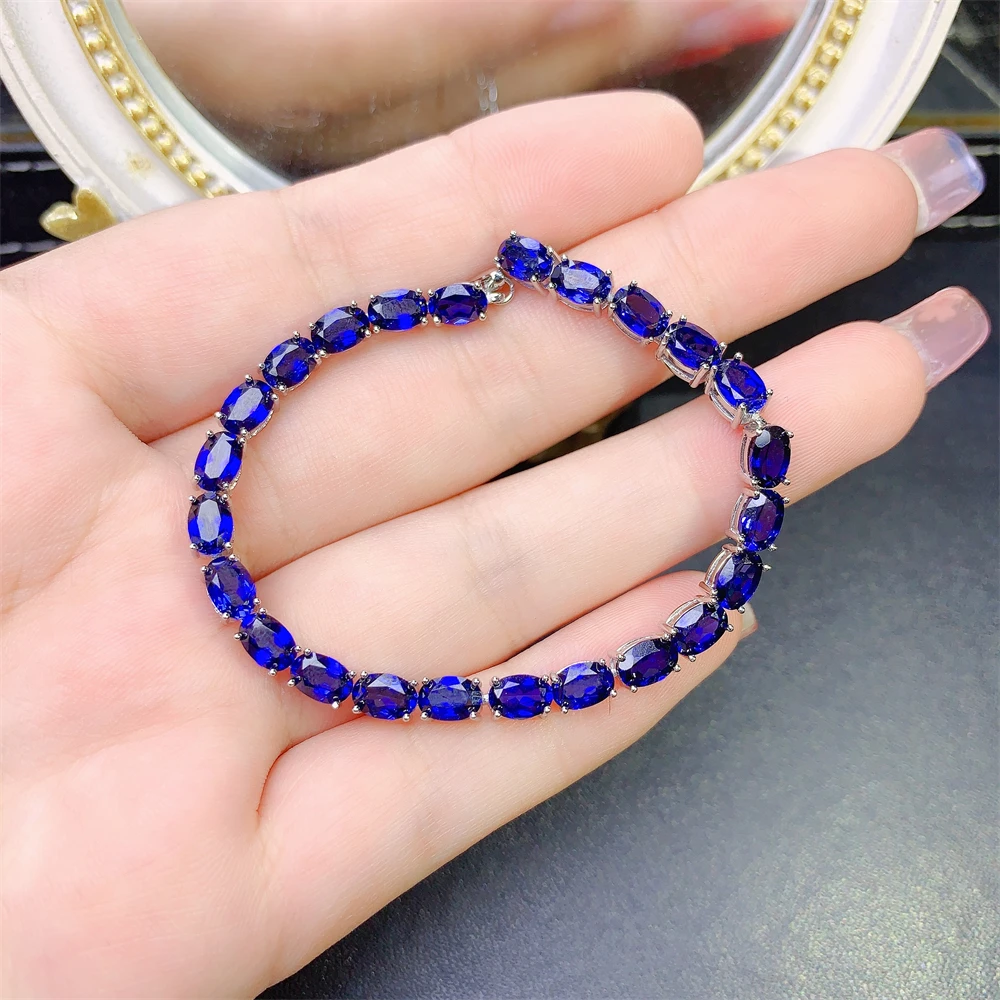 Natürliches Saphir-Armband aus 925er-Sterlingsilber mit hoher Auflösung, Damenfarbe, sch&o...