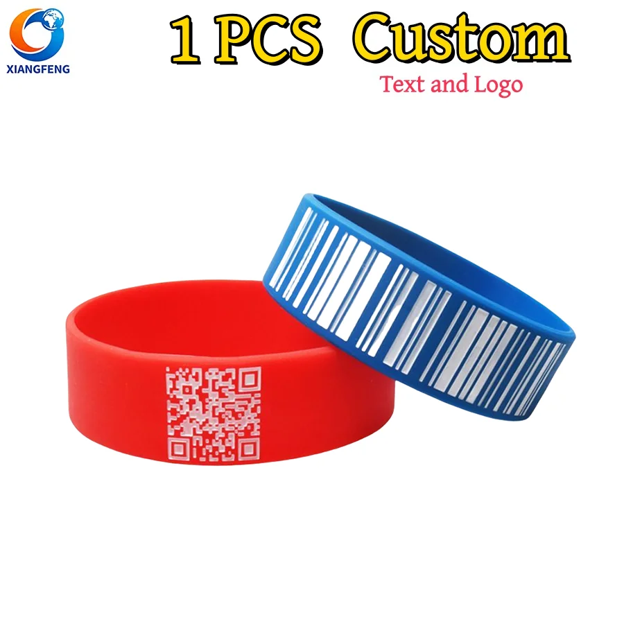 1 Stück Silikonarmband mit personalisiertem Text und Logo. Benutzerdefinierte 20 mm QR-Code, SO...