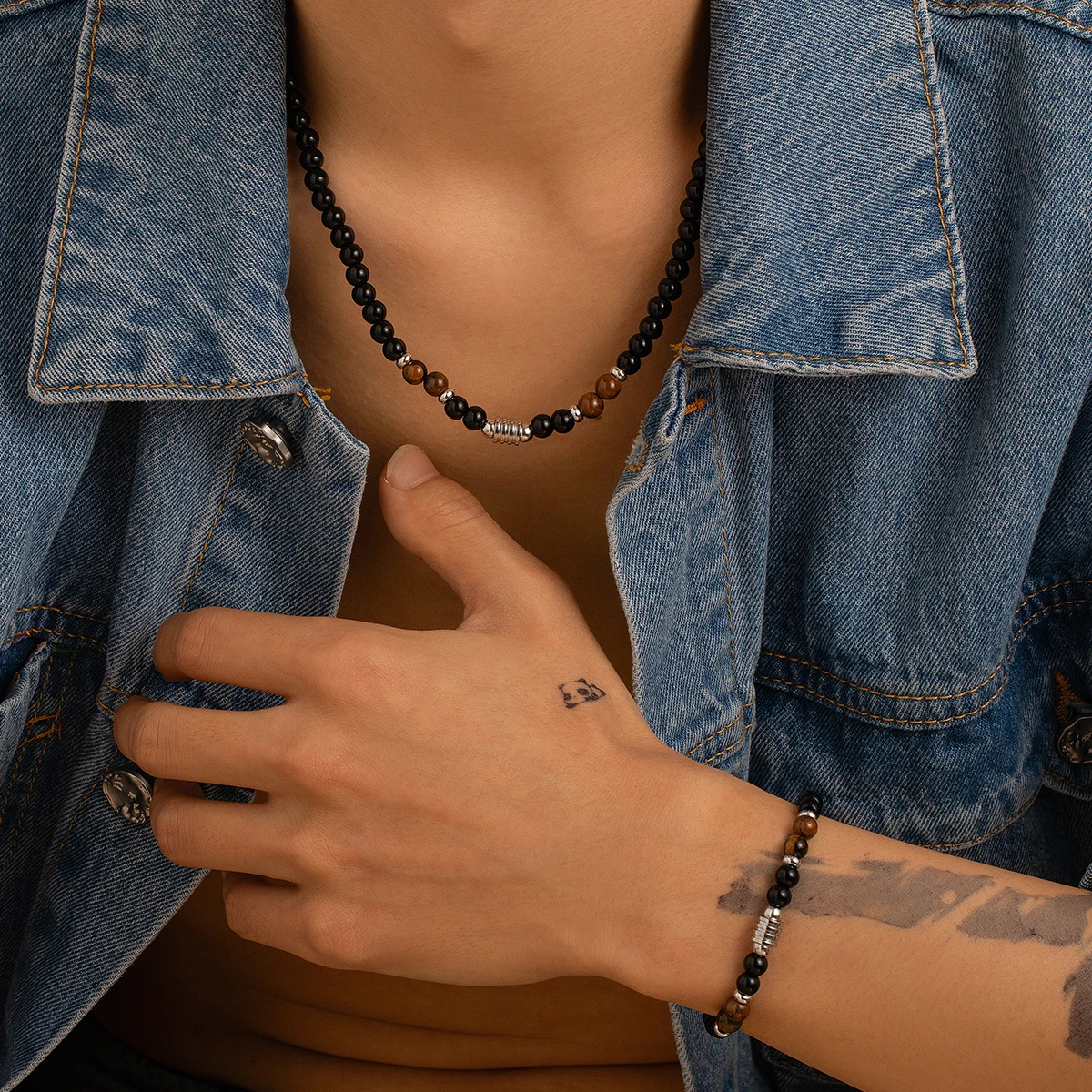 Kunjoe 2 teile/satz natürliche Tiger Stein Glasperlen Halskett...