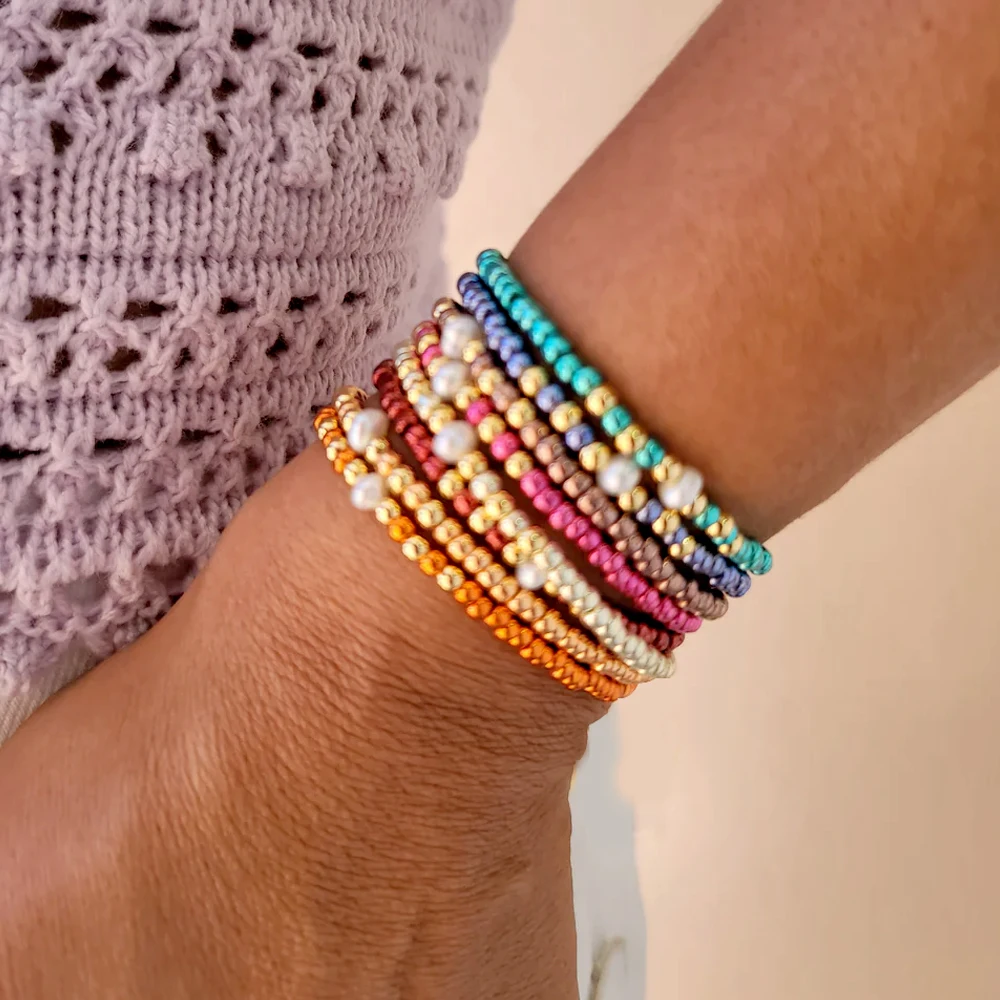 Go2boho Multi Strang Armband zierliche Samen Perlen Modeschmuck goldene bunte drei schicht ige Armb&...