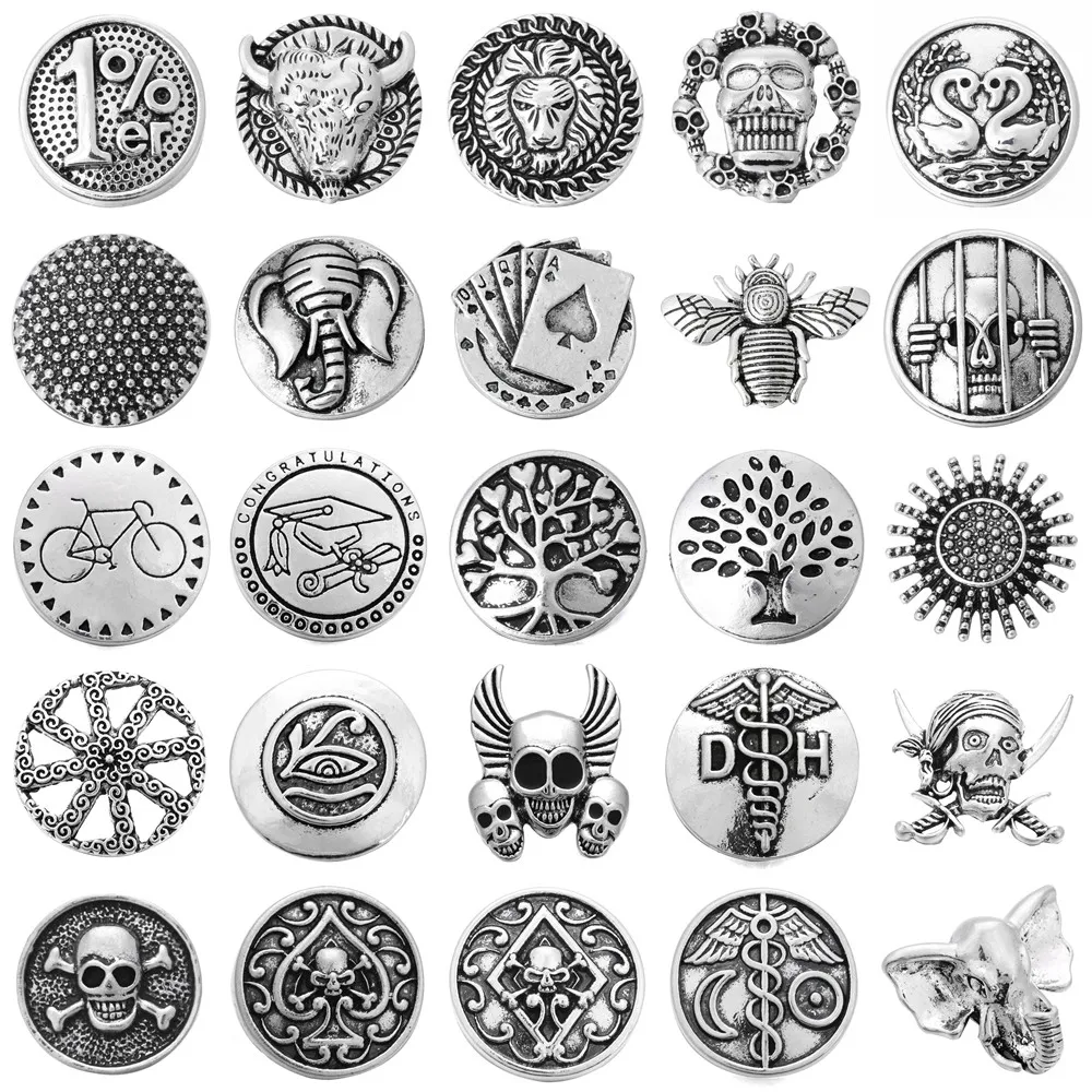 5 teile/los Neue Snap Schmuck Runde Metall Snaps Schädel Elefanten Baum Flügel 18mm Druckk...
