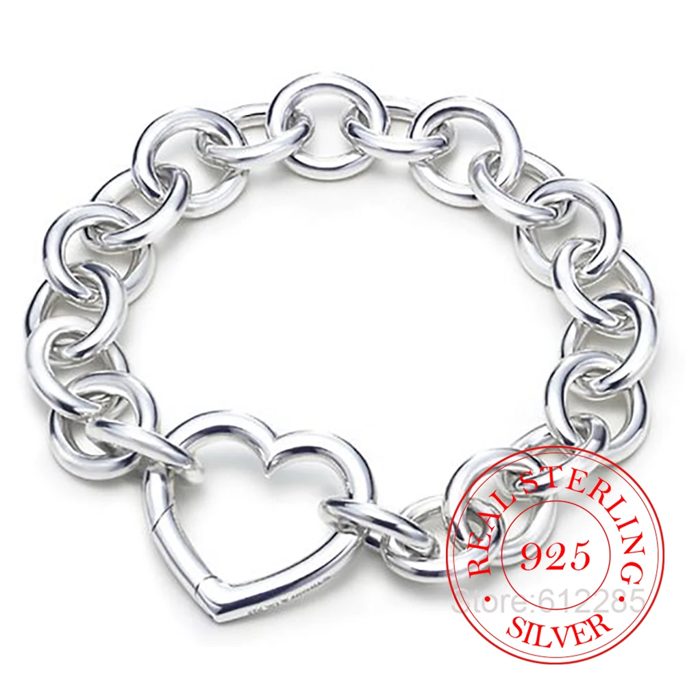 925 Solide Echt Sterling Silber Armband Mode Liebe Herz Armband 20 ...