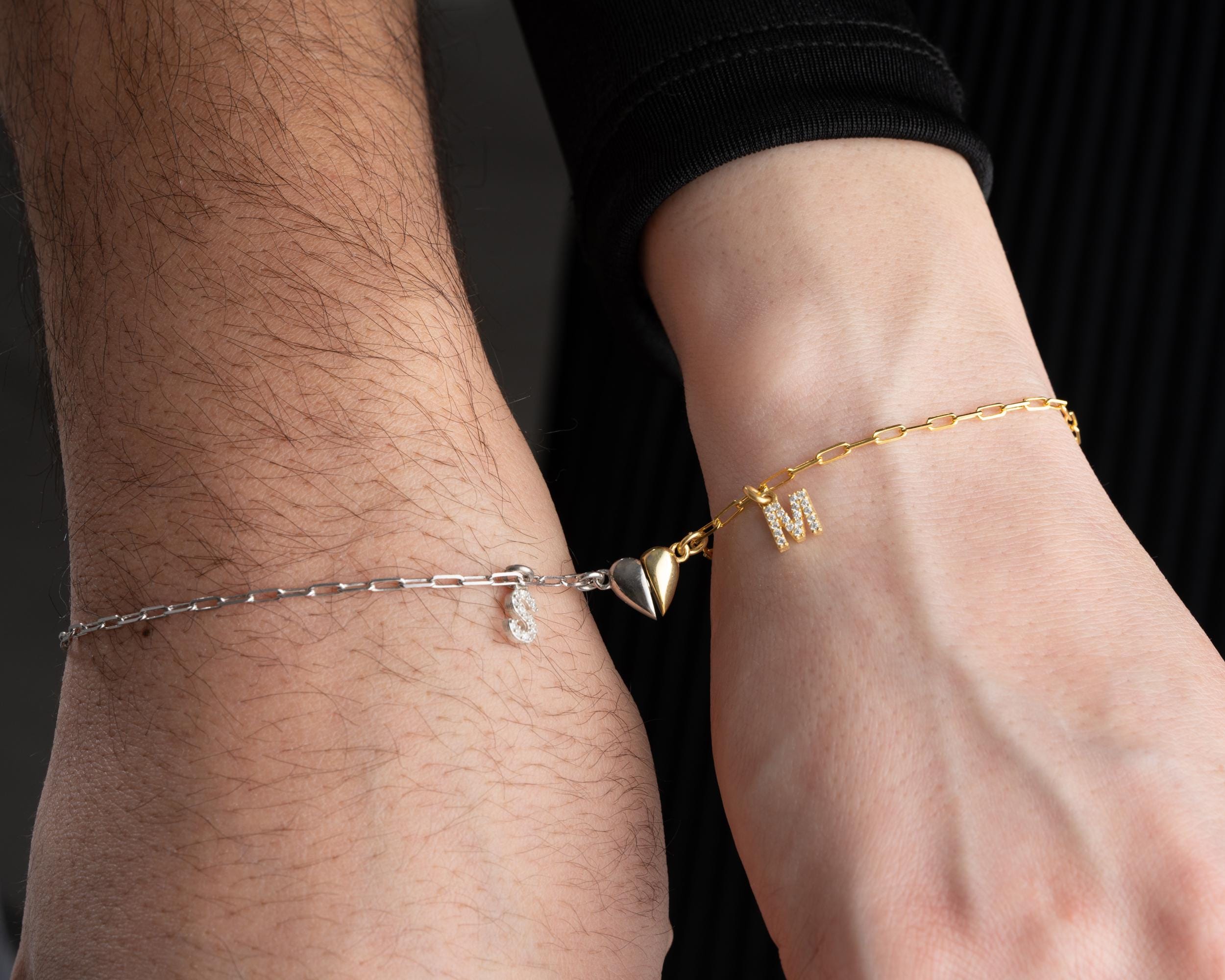 Magnetic Mathching Heart Couples Bracelets With Initials, Attached ...