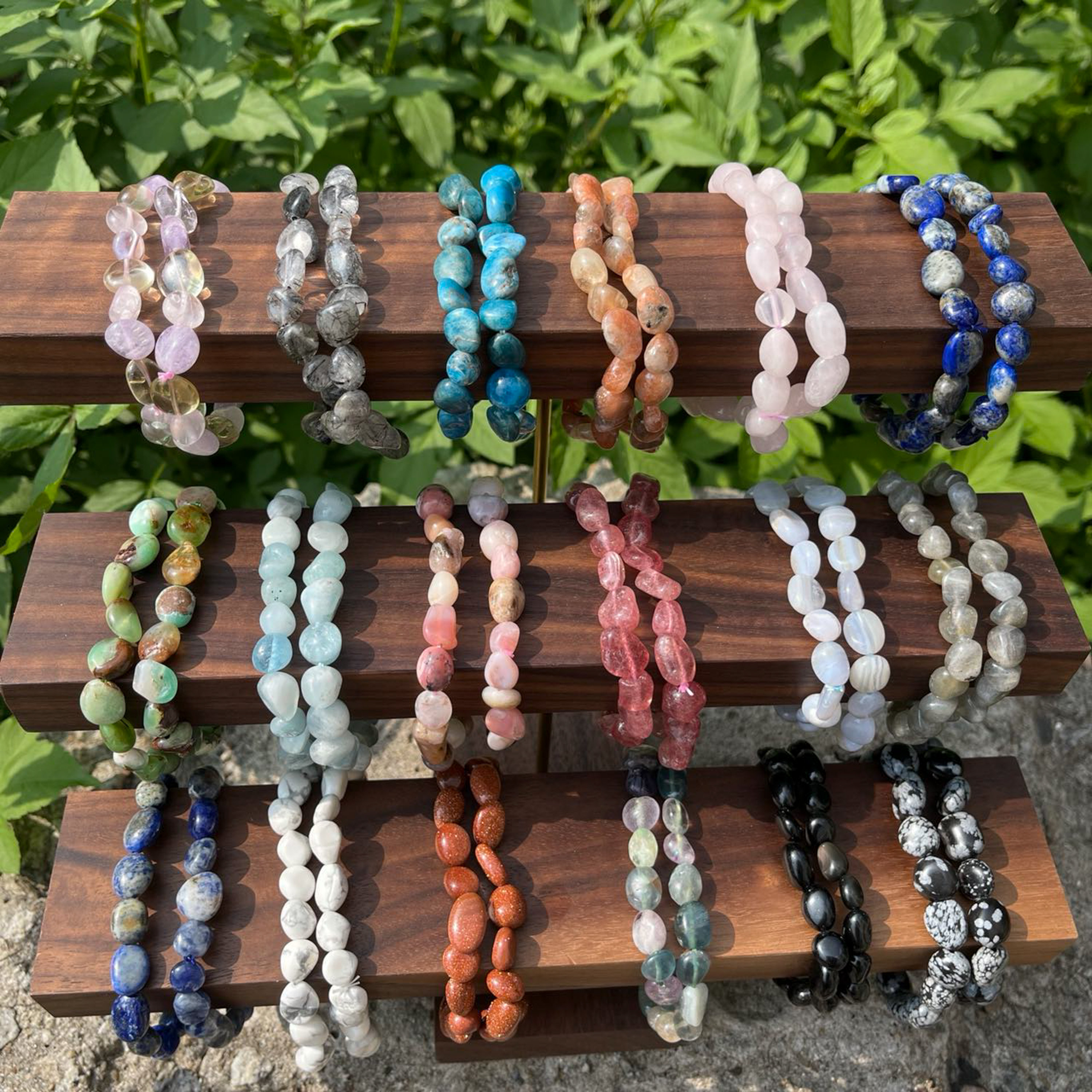 Tumbled Crystal Bracelets, Gemstone Freeform Bracelets, Stretchy Br...
