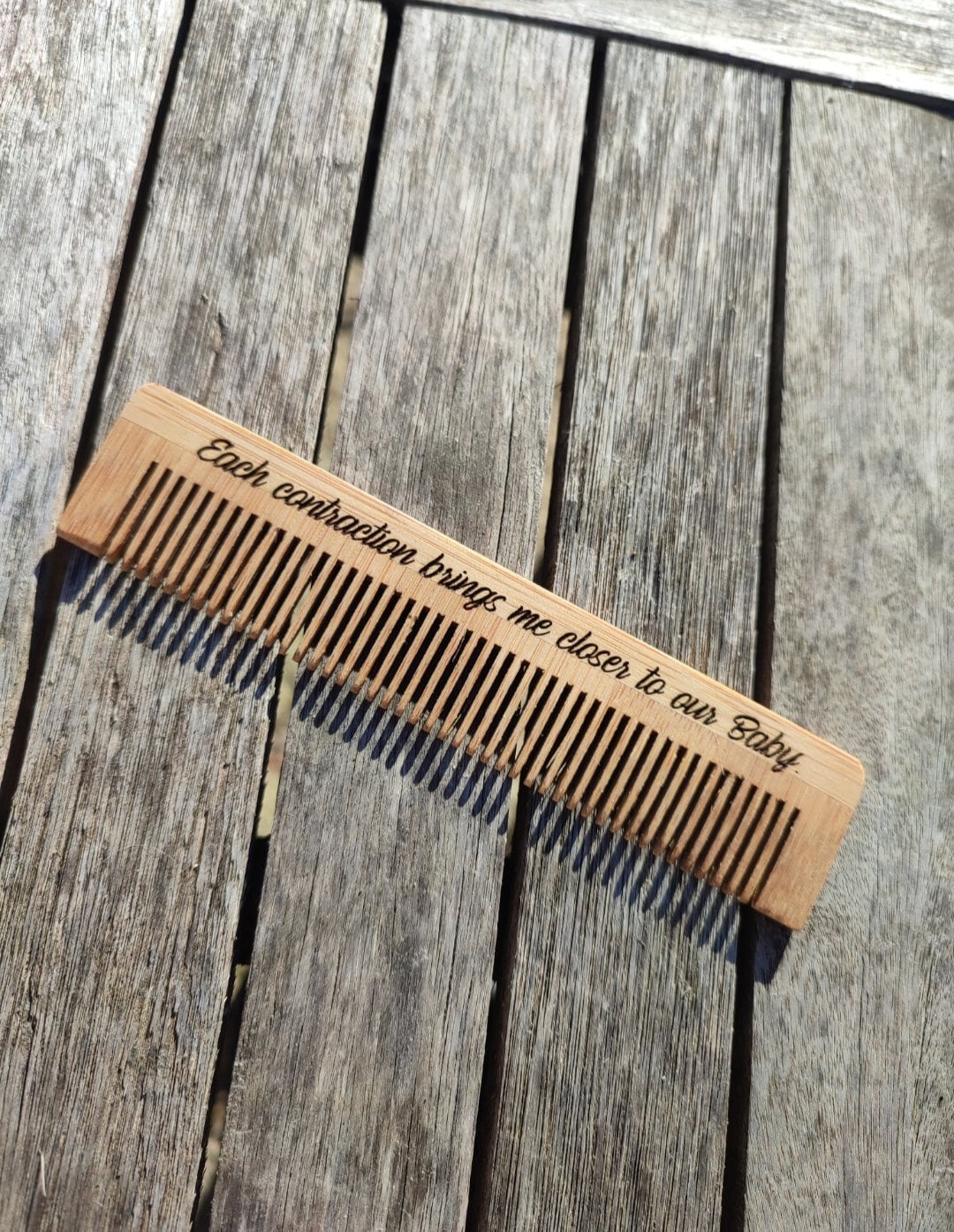 Dies ist ein 13 cm langer Bambuskamm aus Holz Es wird mit einem Satz versehen, der Sie zur Geburt mo...