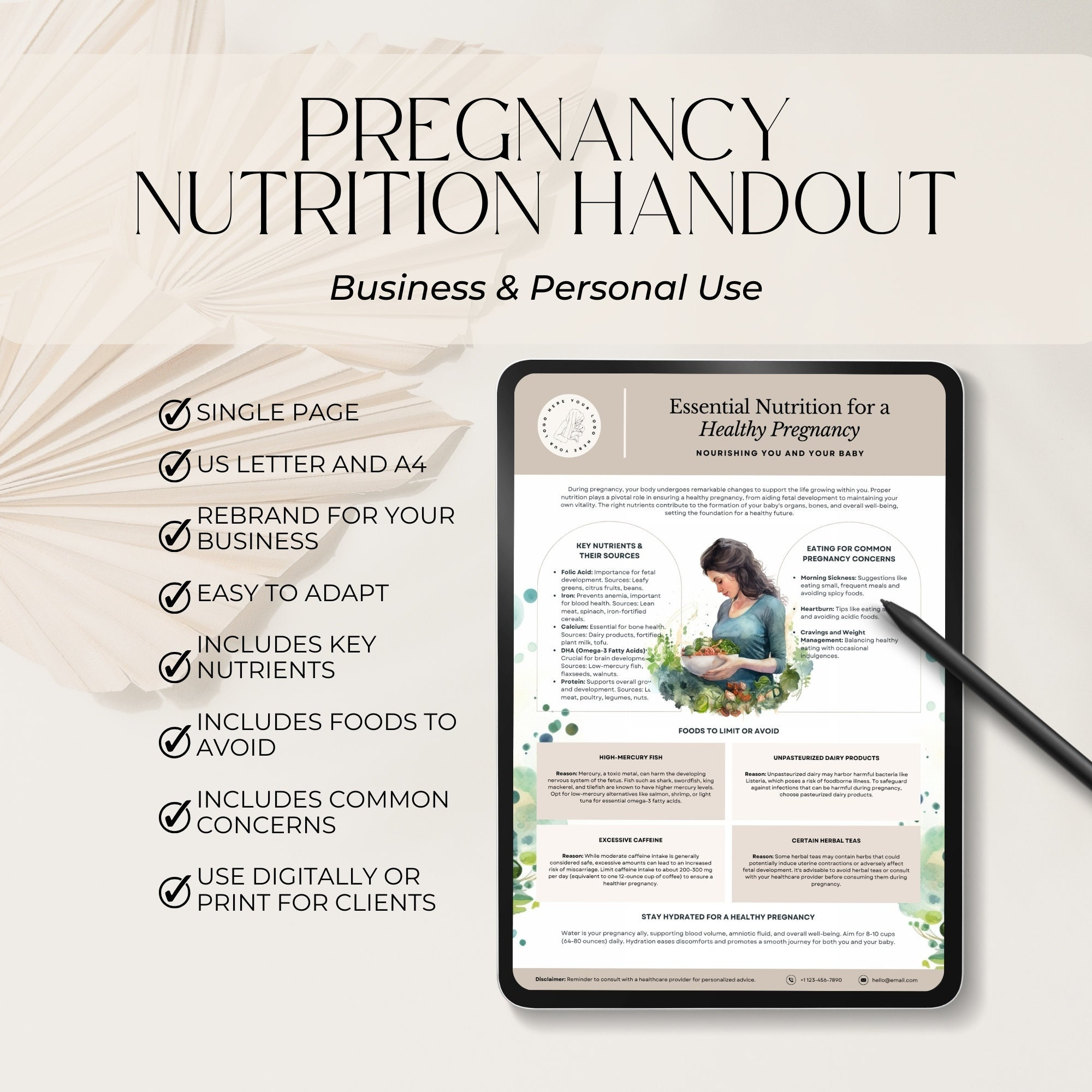Eine einzelne Seite Handout zum Thema Schwangerschaft Ernährung - eine wichtige Ressource f&uum...