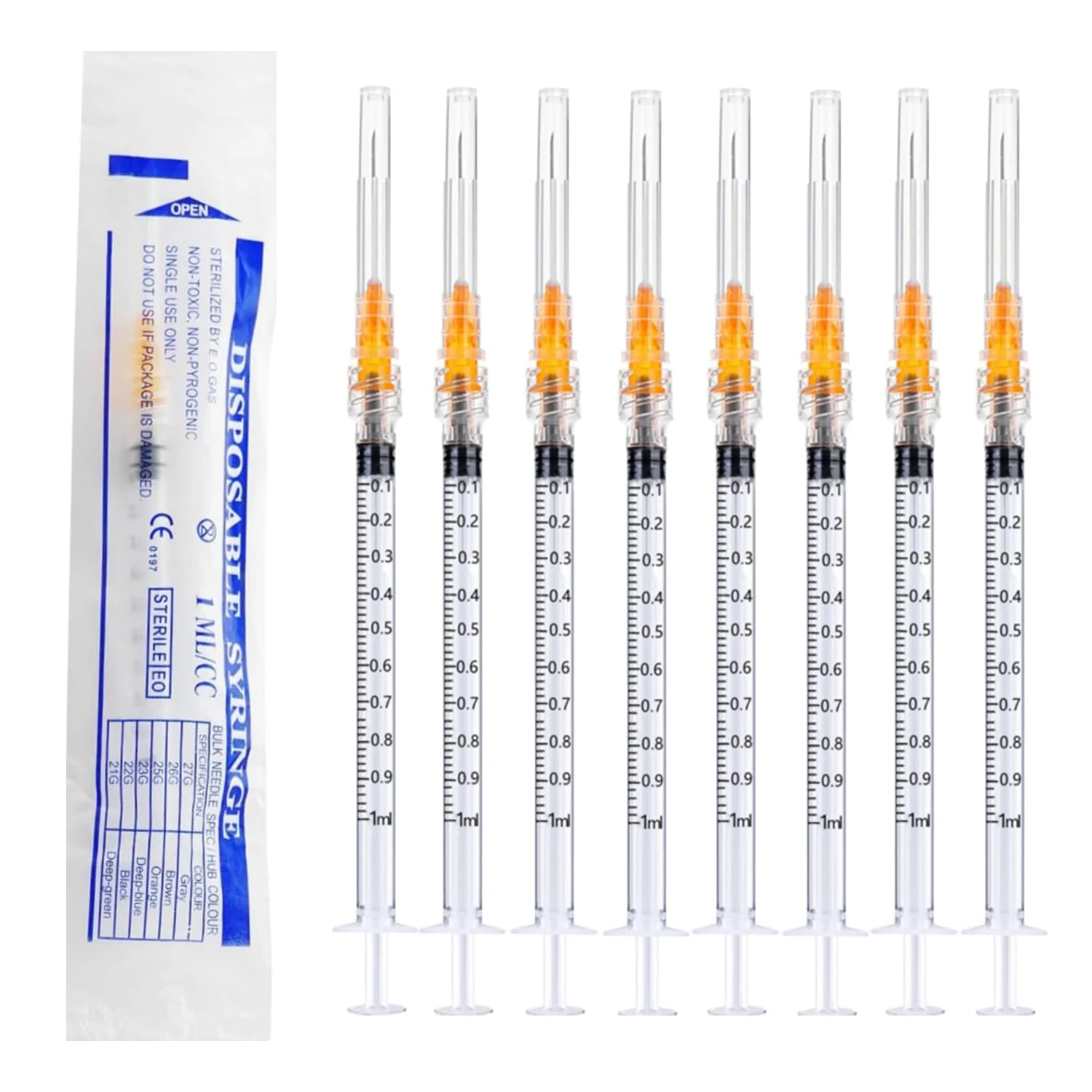 100 Stück 1 ml/cc sterile Luer-Lock-Spritze mit 25 G 1-Zoll-Nadel, Einzelverpackung für wi...