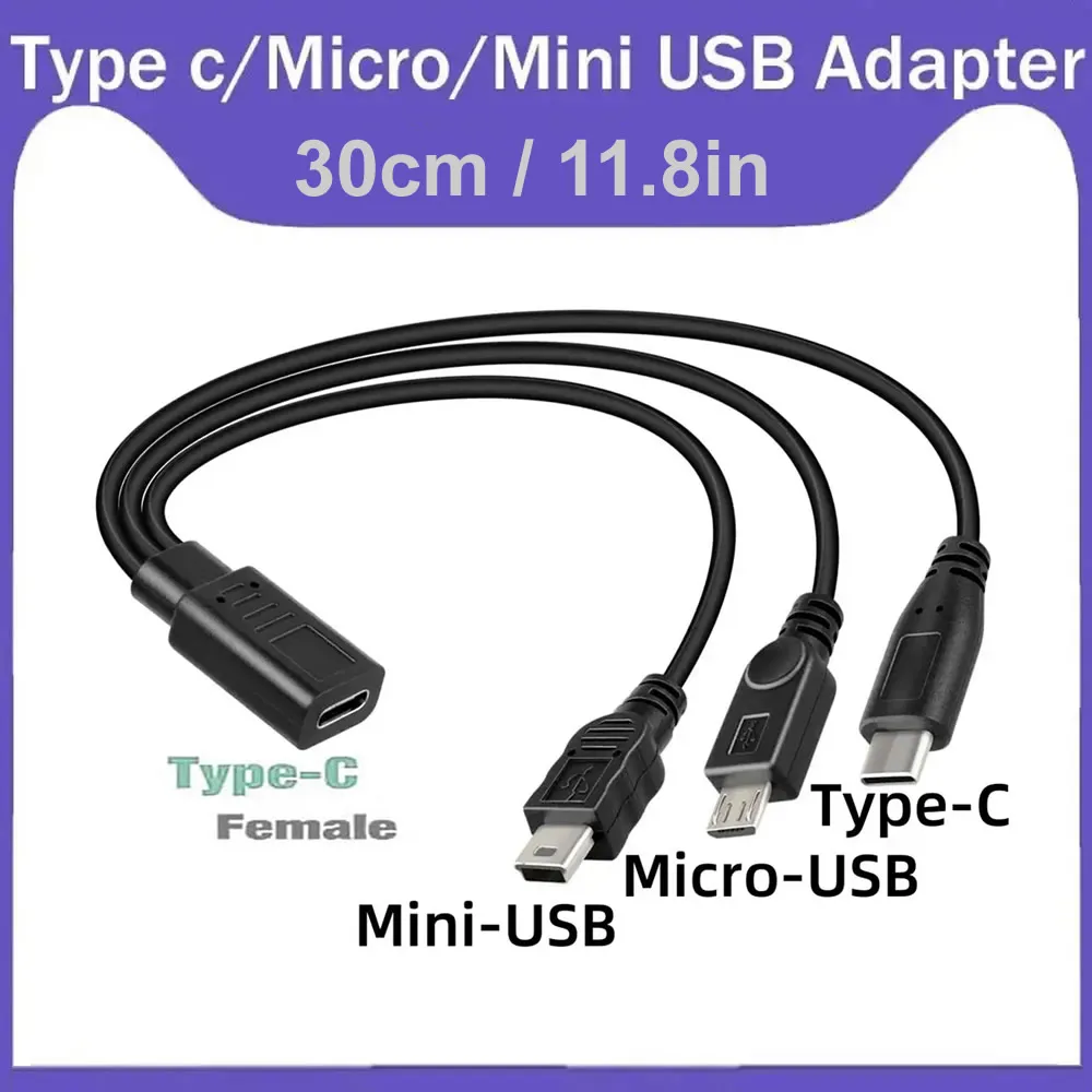 3-in-1 USB-C-Buchse auf Mini-USB/Typ-C-Buchse auf Micro-USB-Kabel, USB-Typ-C-Stromverlängerungs...