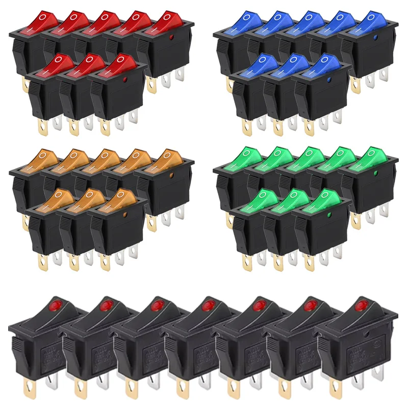 5/20Pcs KCD3 Rocker Switch ON-OFF 2Pin 3Pin Electric Push Switch with LED Light/Red Dot Switches 14x...