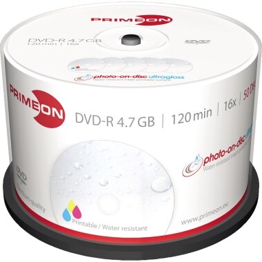 PRIMEON DVD-R 2761207 16x 4,7GB 120Min. Spindel 50 St./Pack. Die hochauflösende "photo-on-...