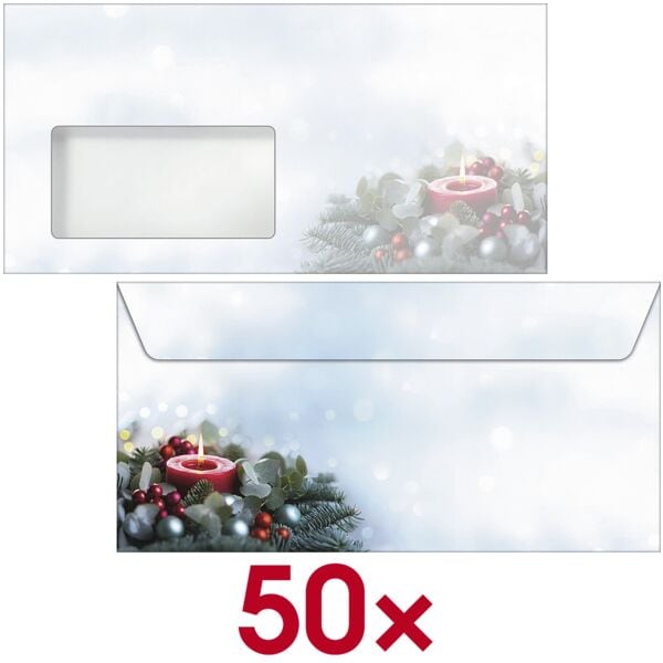 Motiv-Briefumschlag Candlelight Cheer DIN lang mit Fenster 50 Stück, Format: DIN lang, Adressfe...
