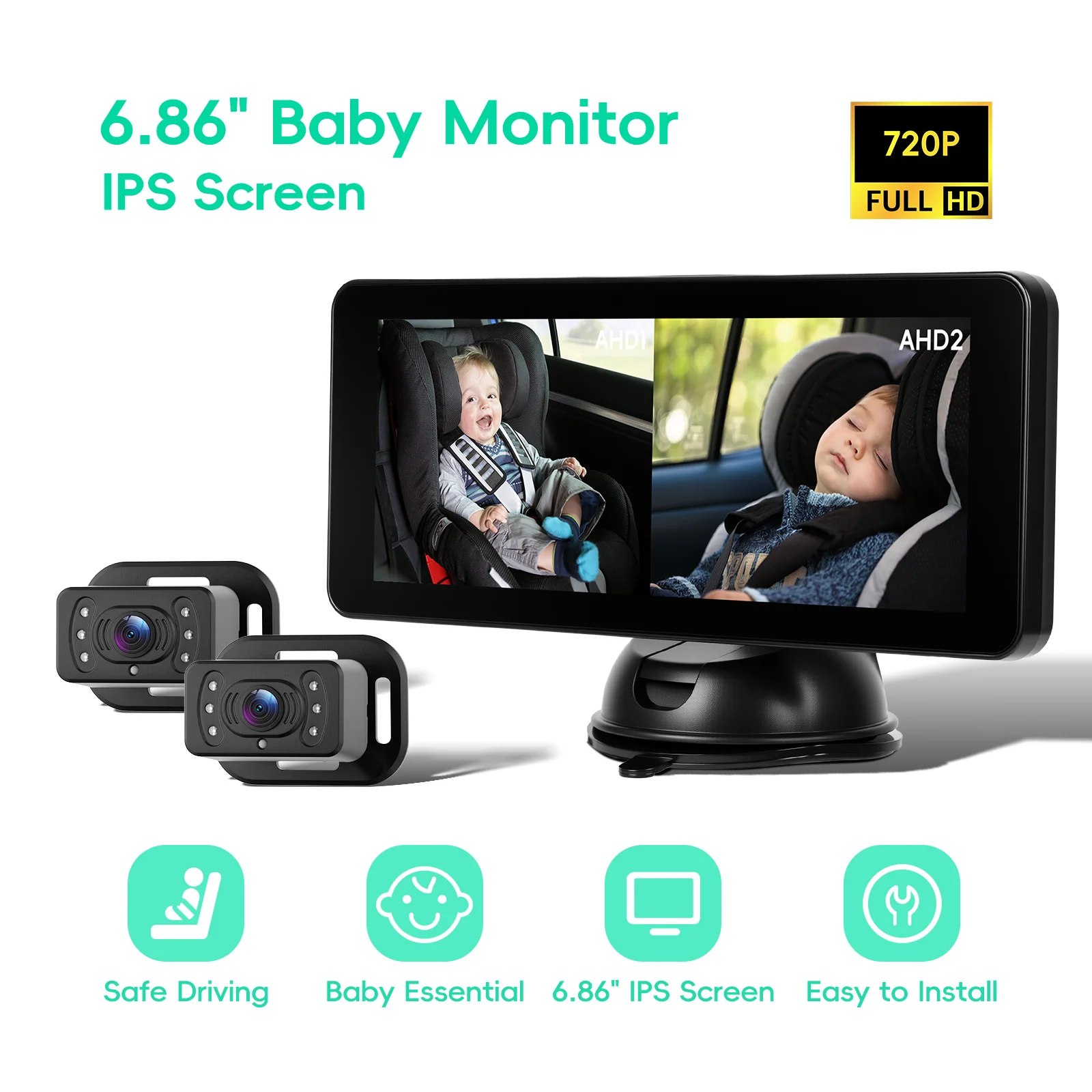 Podofo 6,86'' Baby-Auto-Kamera, Touchscreen, Auto-Babyphone mit Nachtsicht, Rückansicht, verste...