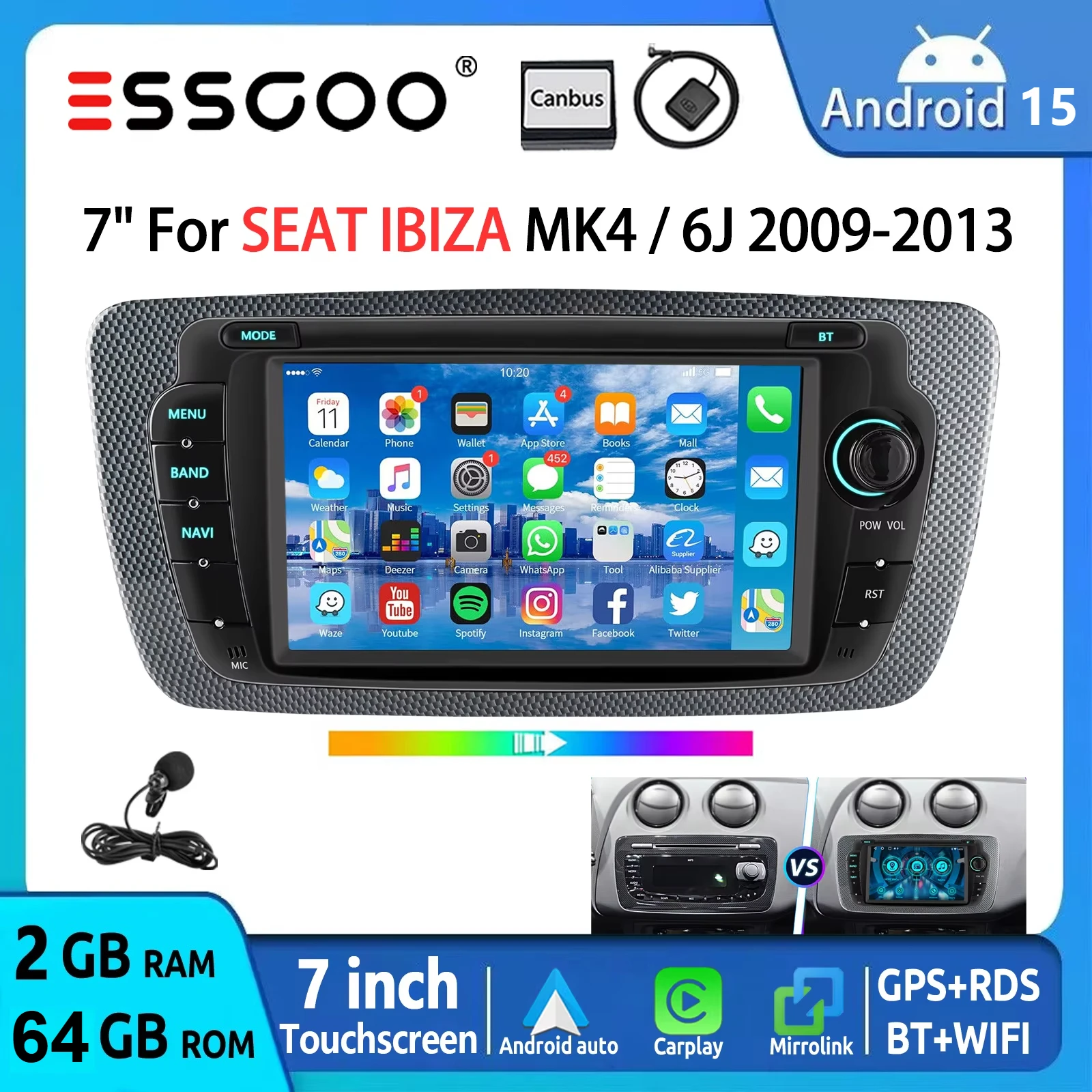 ESSGOO 7" Android 15 Kabelloses Carplay Android Auto Autoradio GPS NAVI WIFI RDS Für SEAT ...