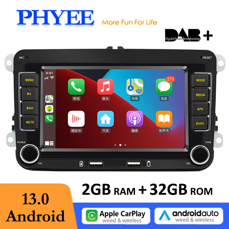 Android-Radio 7" 2 DIN, kabelloses CarPlay/Android Auto, DAB+ RDS BT GPS, 2 GB RAM 32 GB Speich...