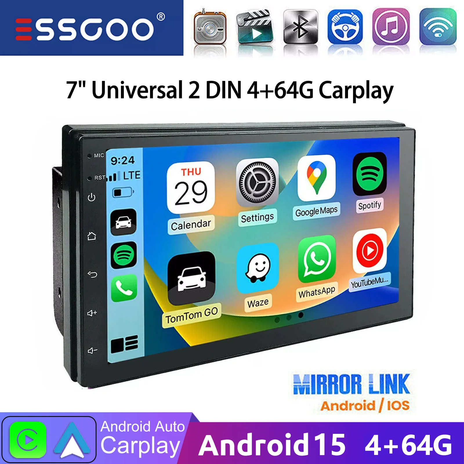 ESSGOO 7" Universal Android 15 4+64G Kabelloses Carplay Androi...