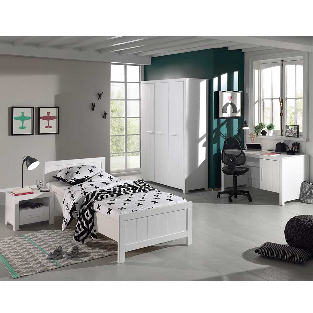 Kinderzimmer Set Kinderzimmermöbel in Weiß lackiert (vierteilig) - Vierteilig - Mit Holzg...