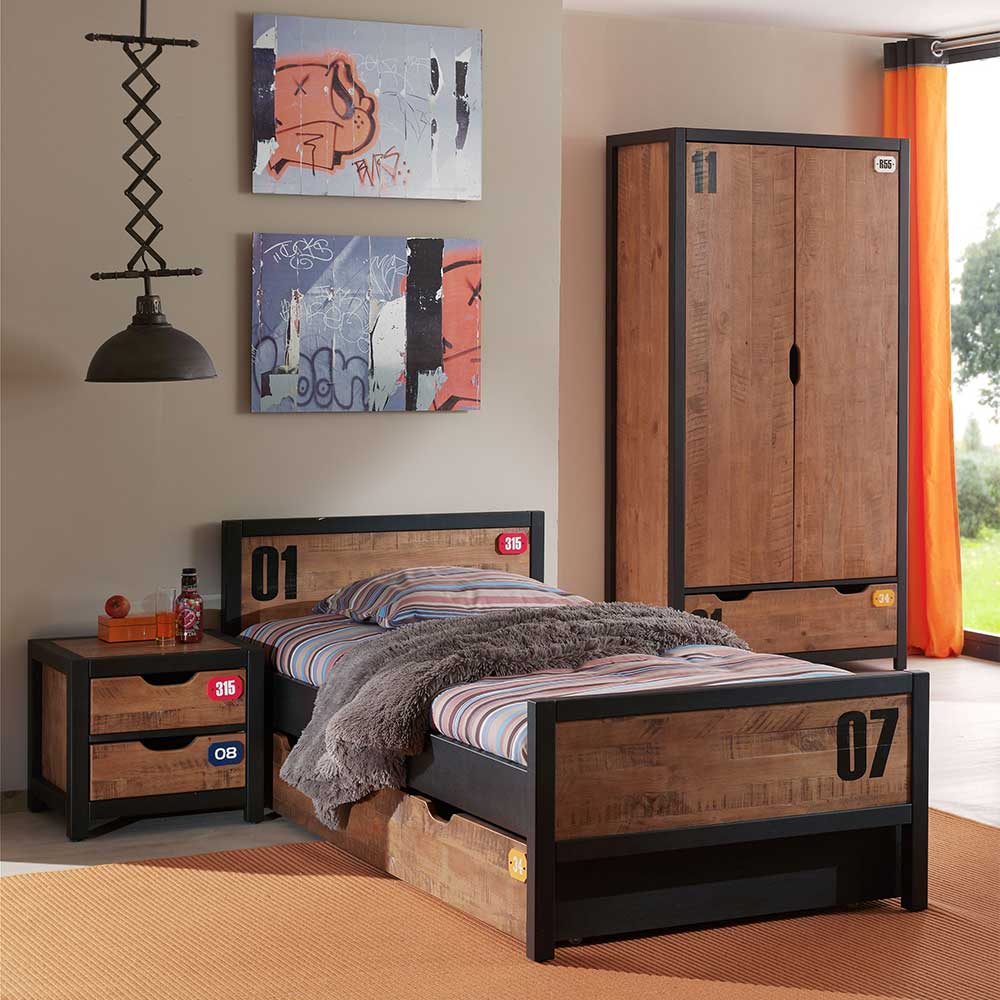 Kinderzimmer Set modern in Schwarz Kieferfarben (dreiteilig)