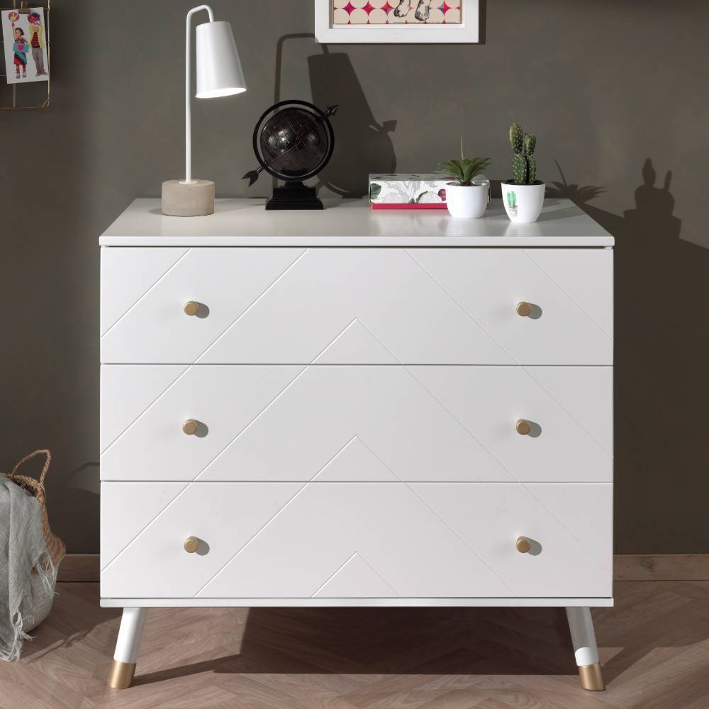 Schubladenkommode Kinderzimmer in Weiß Goldfarben