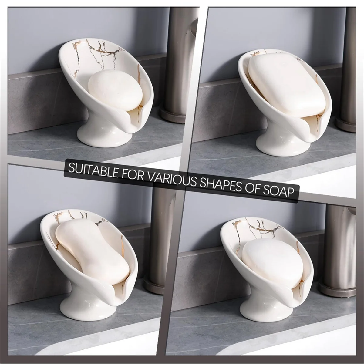 2025+Seifenschale, Keramik-Seifenhalter, selbstentleerend, Marmor-Look, blattförmige Seifenscha...