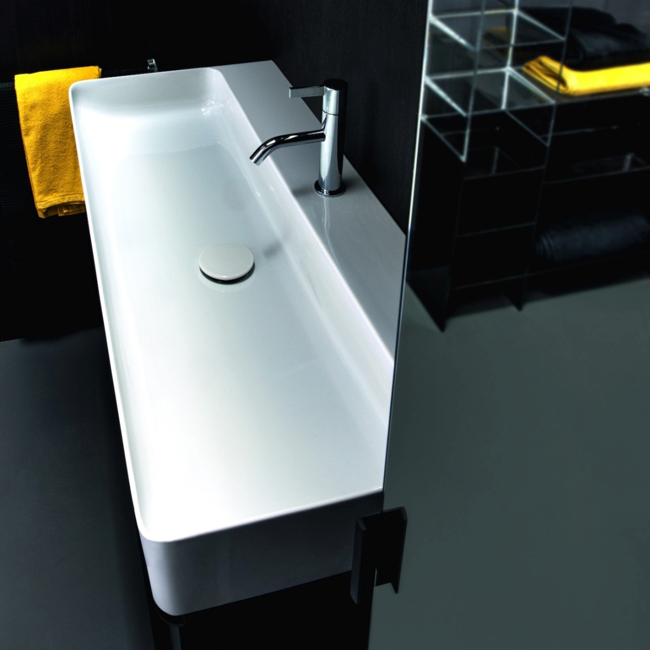 Der unterbaufähige Waschtisch aus der Serie KARTELL LAUFEN von LAUFEN besteht aus Saphirkeramik...