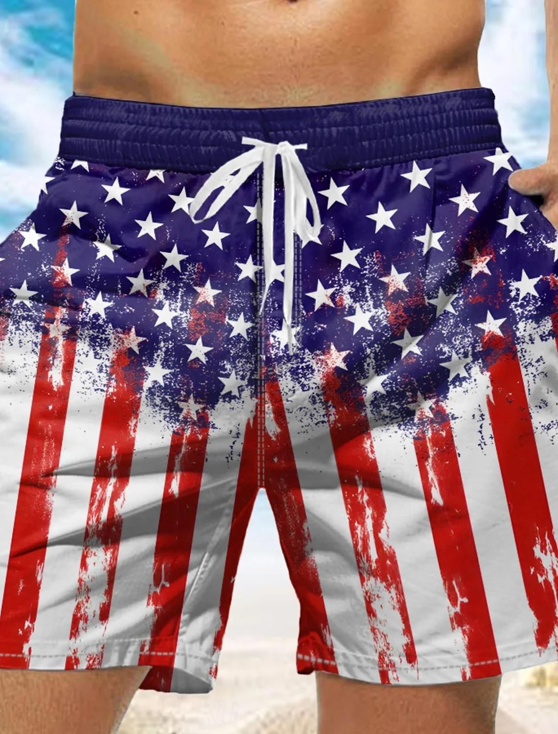 Herren-Badeshorts mit amerikanischer US-Flagge, lässig, Sommer...