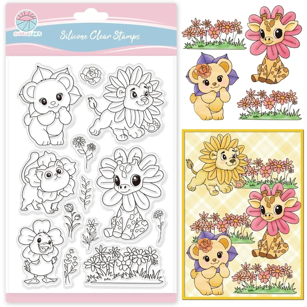 Transparente Stempel mit Blumen und Tieren für die Kartenherstellung, Katzen, Bären, L&oum...