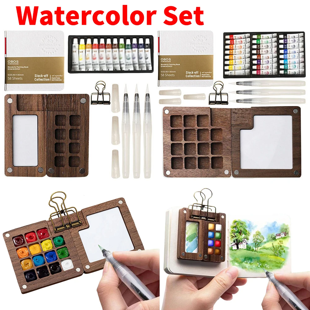 Mini-Reise-Farbpaletten-Set mit Binder-Clips, Aquarell-Palette-Set mit Holz-Farbkasten, Aquarell-Far...