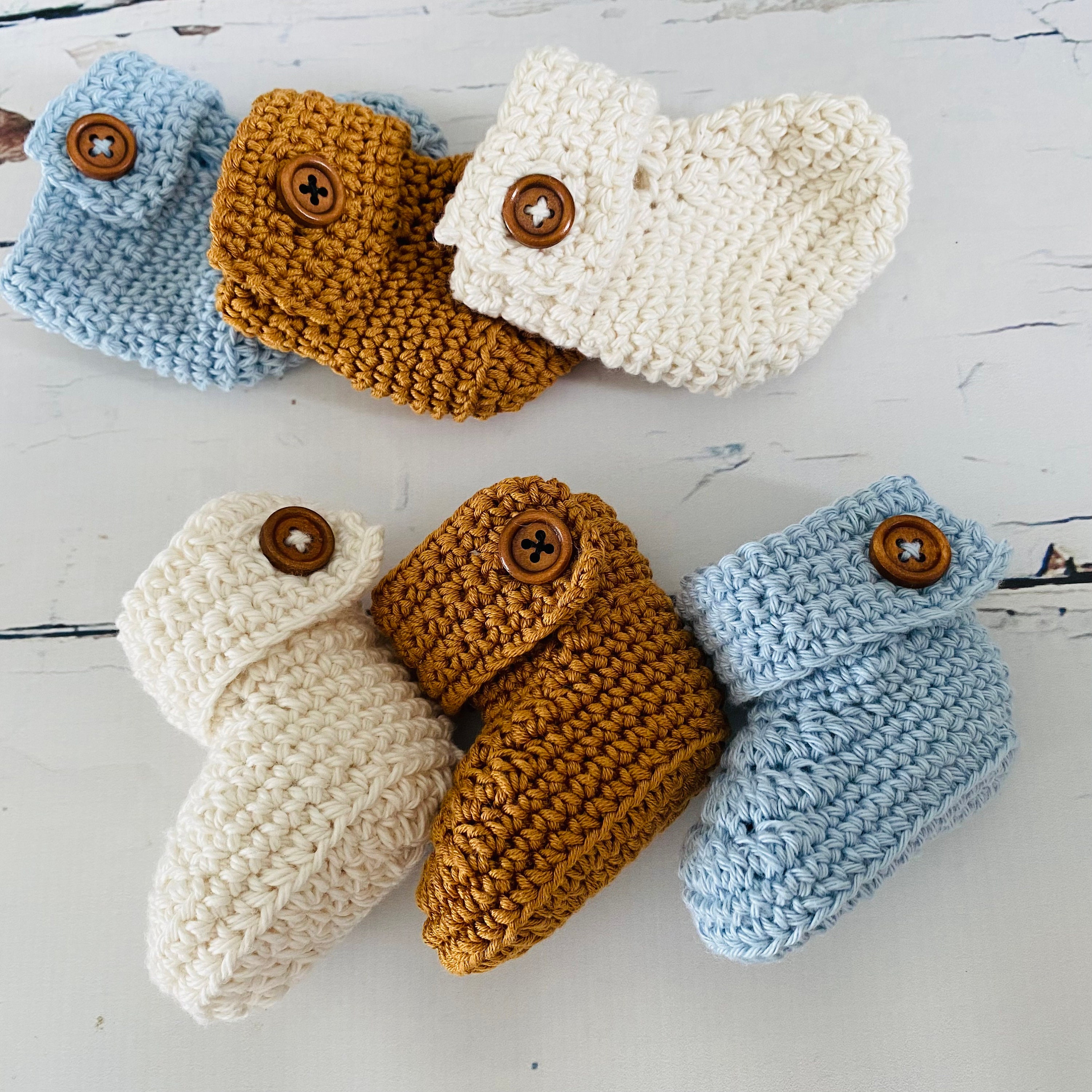 Ein schönes einfaches, aber effektives Häkelmuster für Babyschuhe, das geknöpft ...