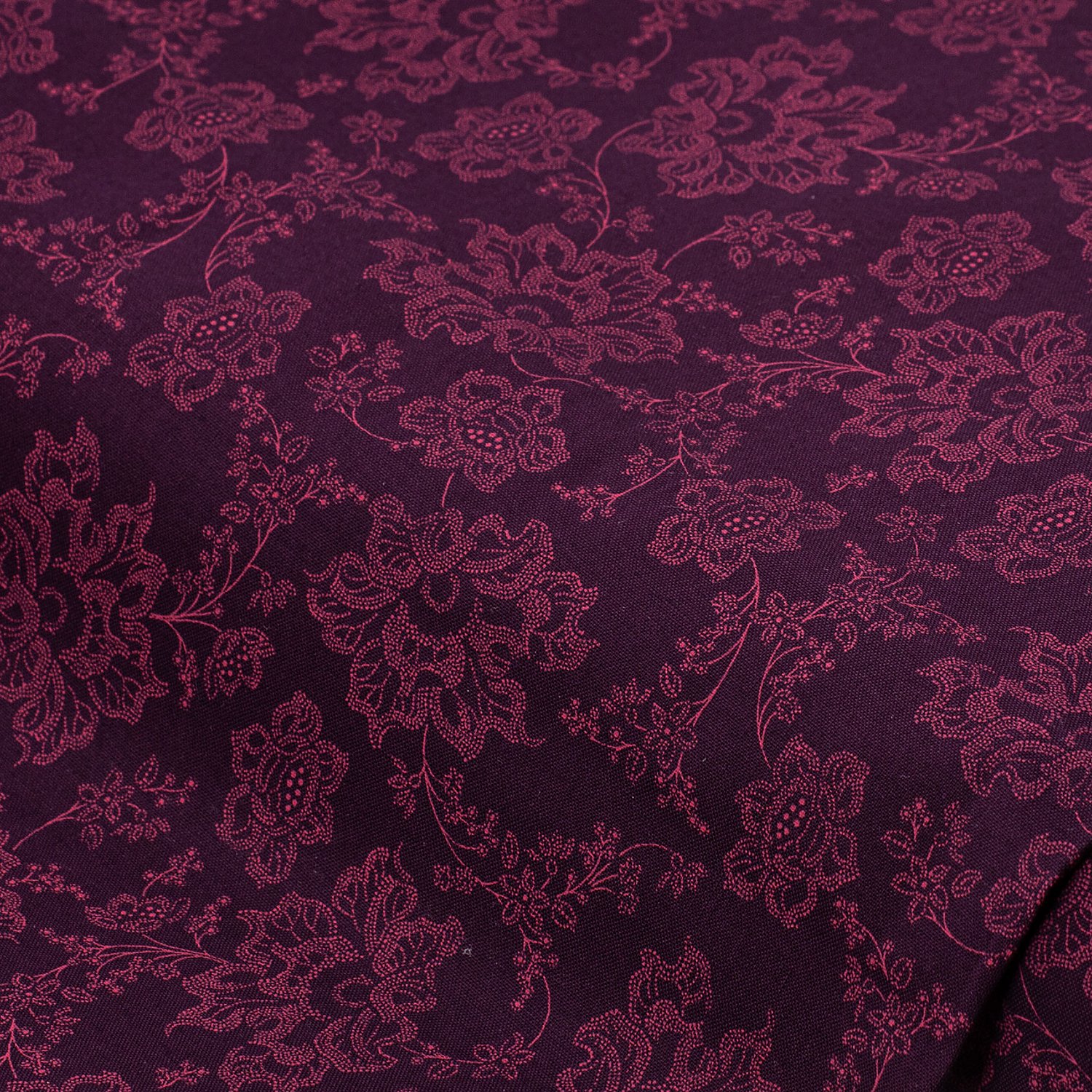 Baumwoll-Trachtenstoff Blumenranken, Farbe: aubergine/rosa, Breite: 145 cm, Gewicht: ca. 145 g/m&sup...