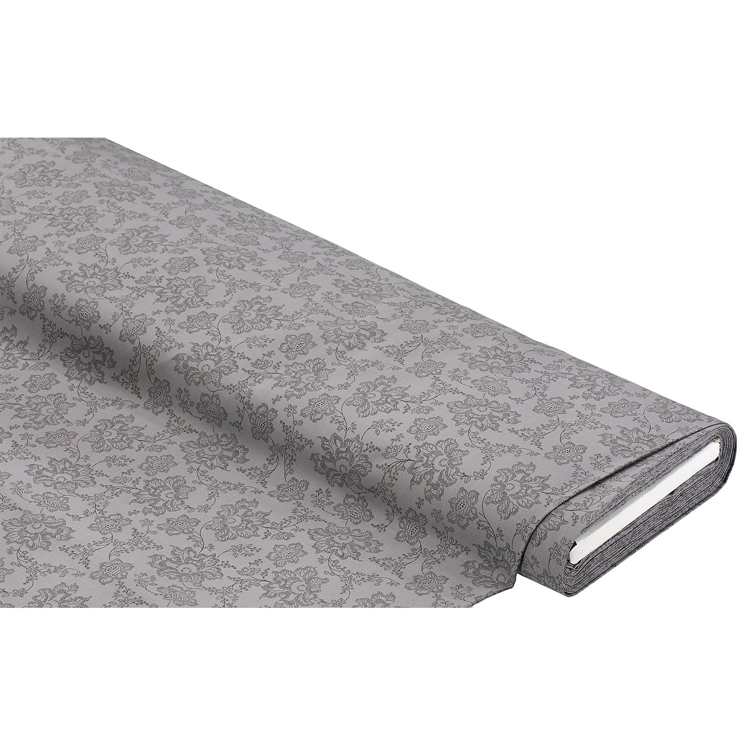 Baumwoll-Trachtenstoff Blumenranken, Farbe: silbergrau/anthrazit, Breite: 150 cm, Gewicht: ca. 145 g...