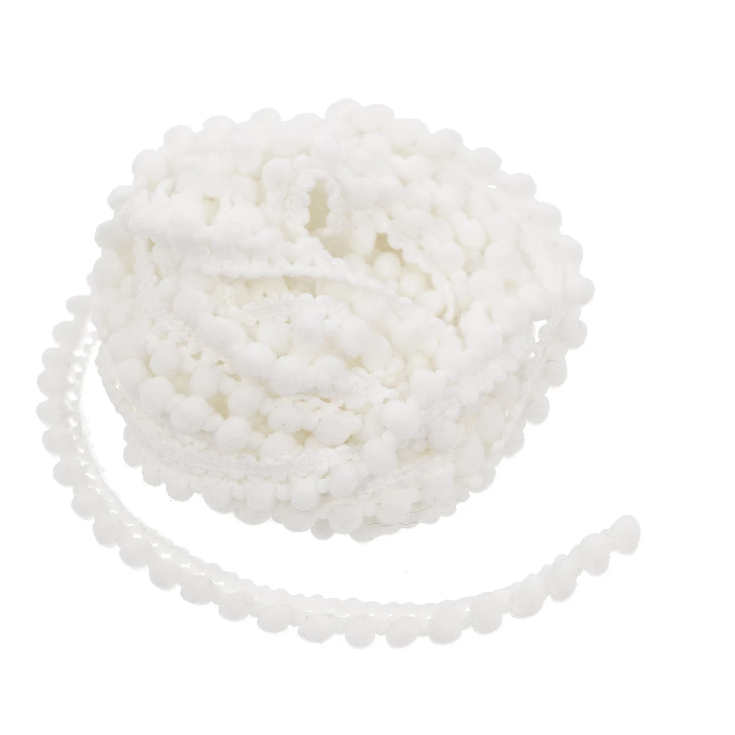 Pompon-Borte, Farbe: weiß, Gesamtbreite: 8 mm, Pompon: 5 mm Ø, 5 m pro Rolle. Material:...