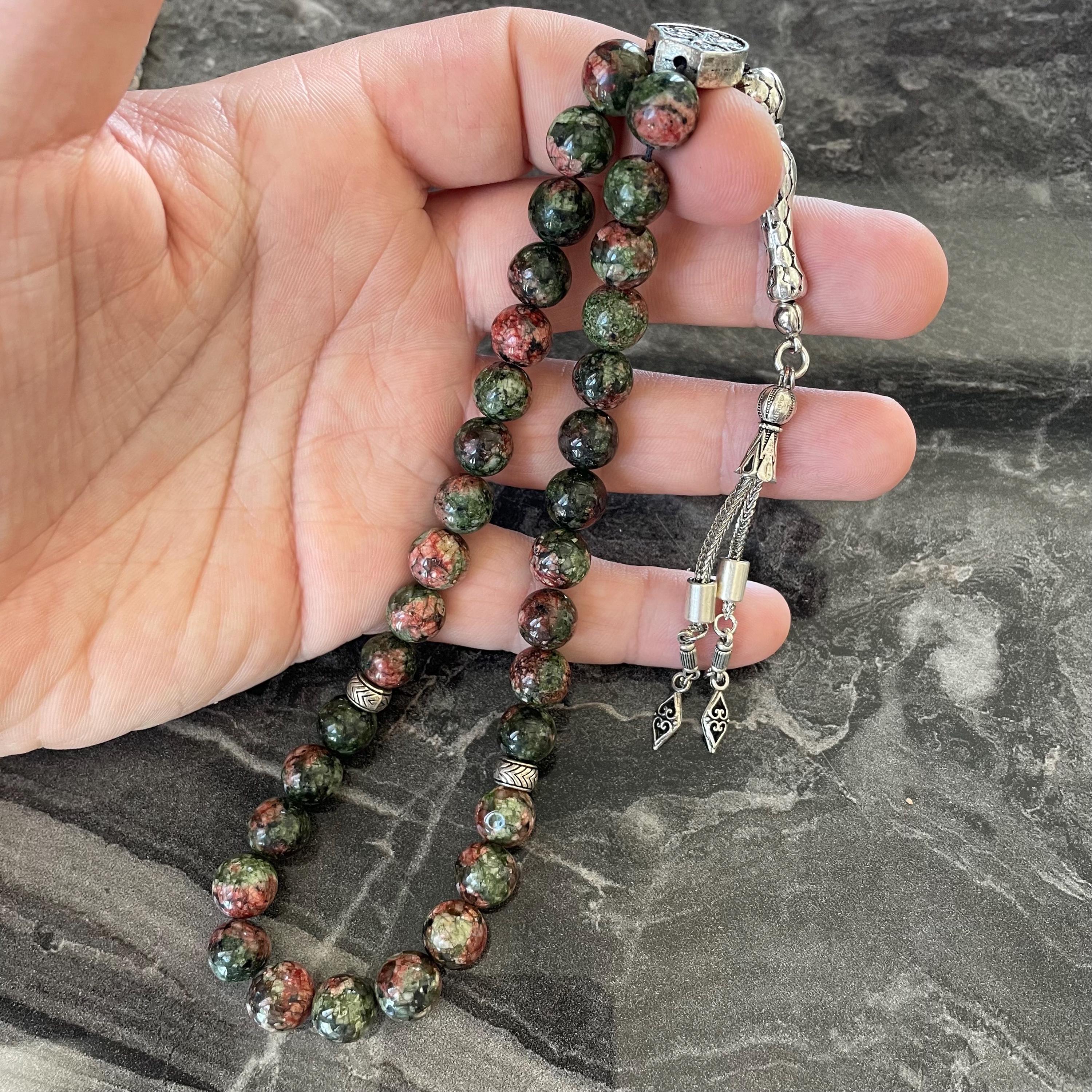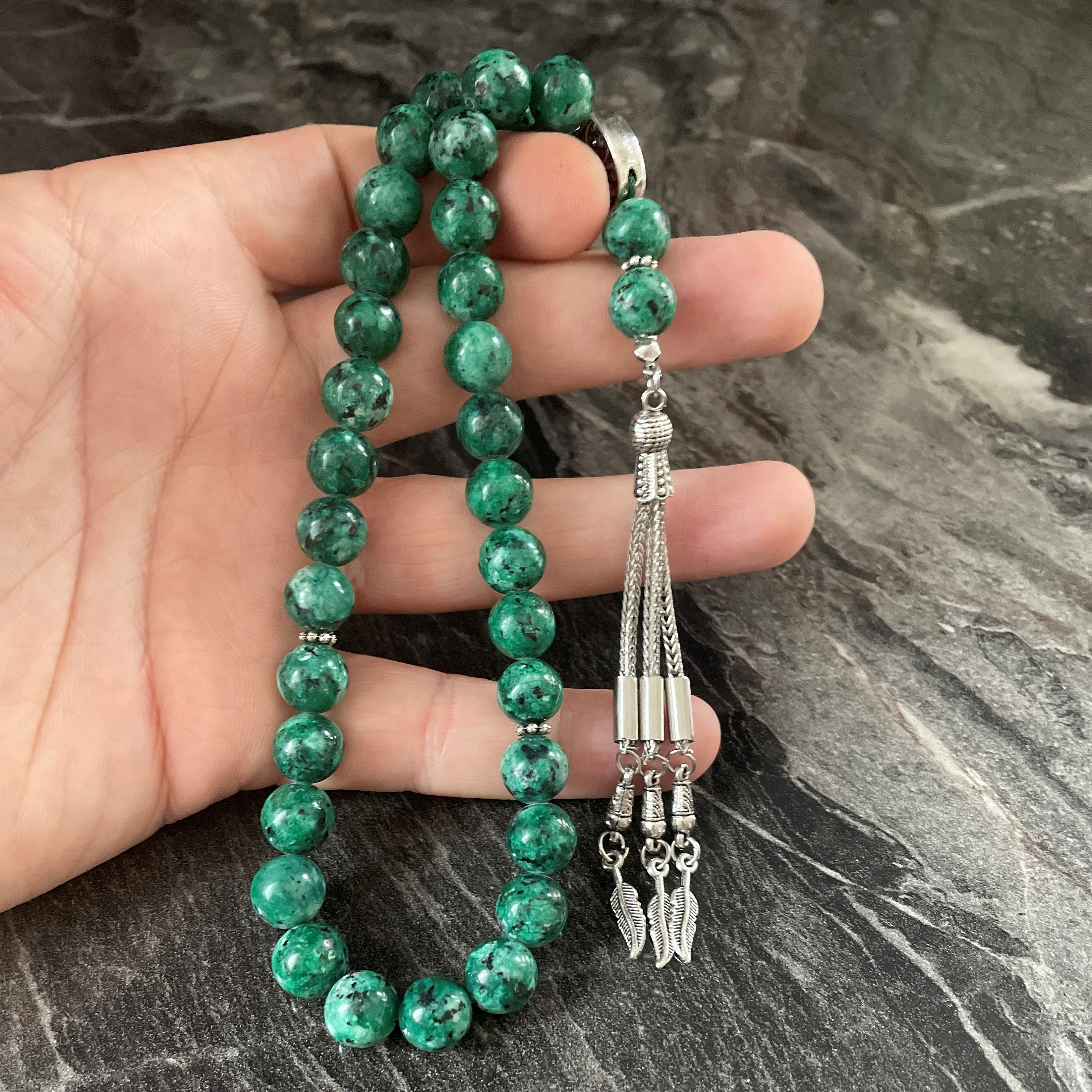Produktdetails * Produktname: Real Green Jade 33 Perlen Islamische Gebetskette, Tasbeeh, Misbaha 10 ...