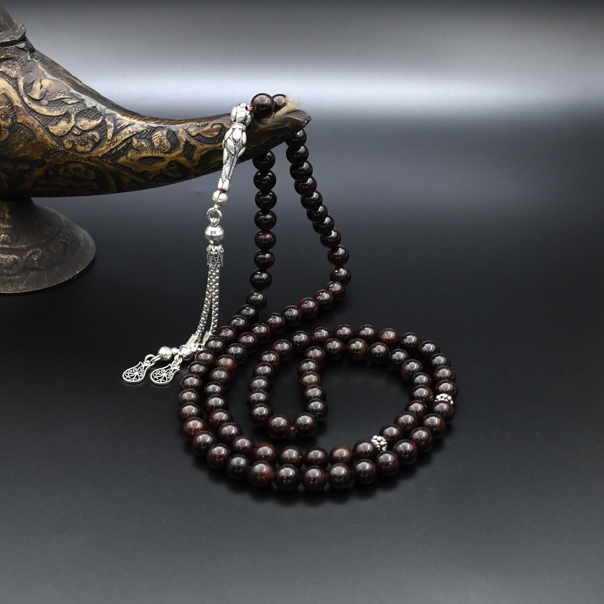 Echter Granat Edelstein 99 Perlen Tasbih mit 925 Sterling Silber Quaste, Islamisches Gebet 99 Perlen...