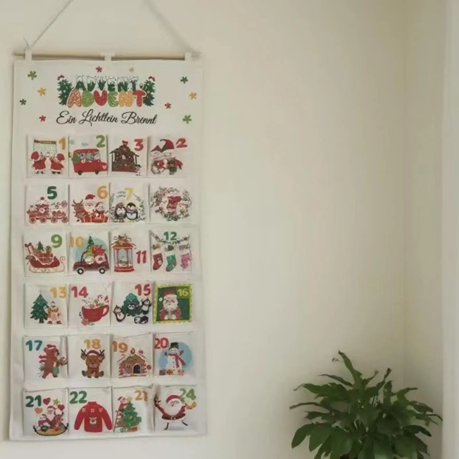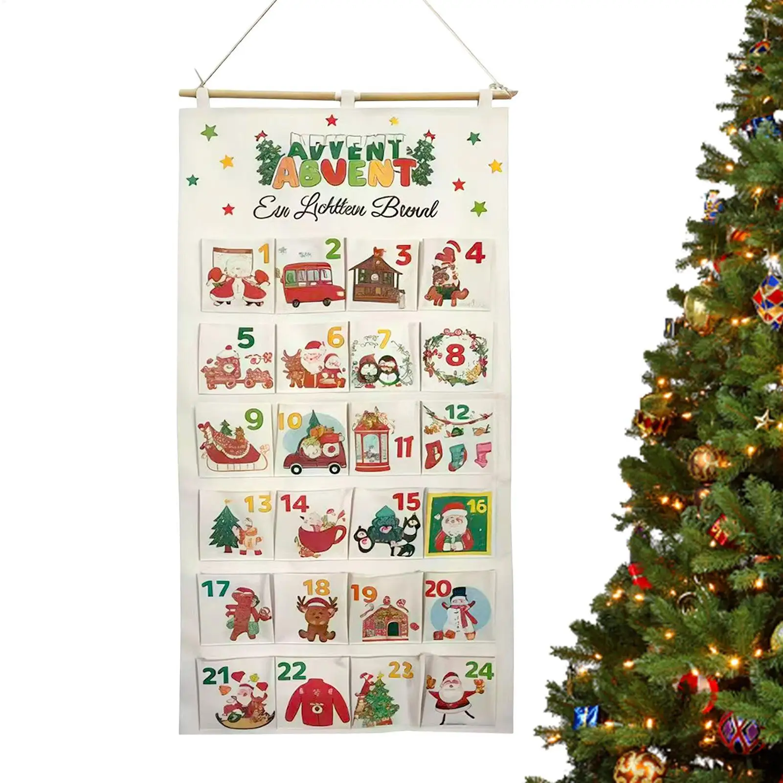 Weihnachts-Stoff-Advent mit Taschen, Snack-Taschen, 24-Tage-Aufhängung, Advent-Countdown-Kalend...
