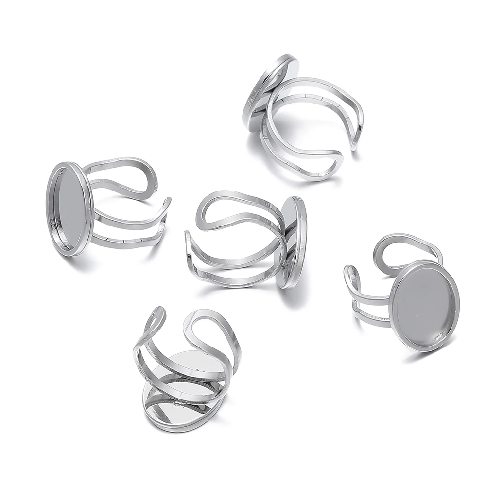 5 teile/los Edelstahl 18/25mm Ring Einstellungen ovale Basis Rohling für DIY Ringe Schmuck Erge...