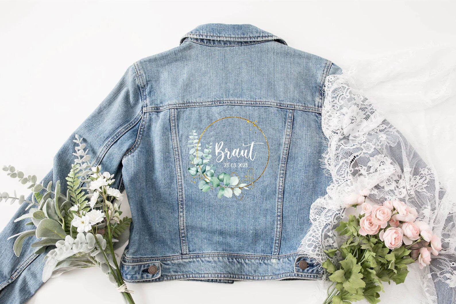 Hochwertiges DTF Bügelbild Team Braut 10 Kränze und 12 Schriftarten stehen euch hier zur A...