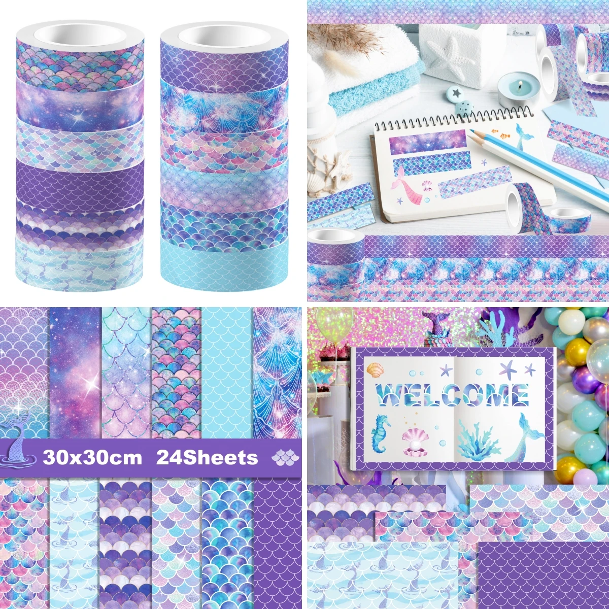 Cartoon Lila Meerjungfrau Skala Muster Washi Tape und Scrapbook Papier Scrapbooking Pad Hintergrund ...