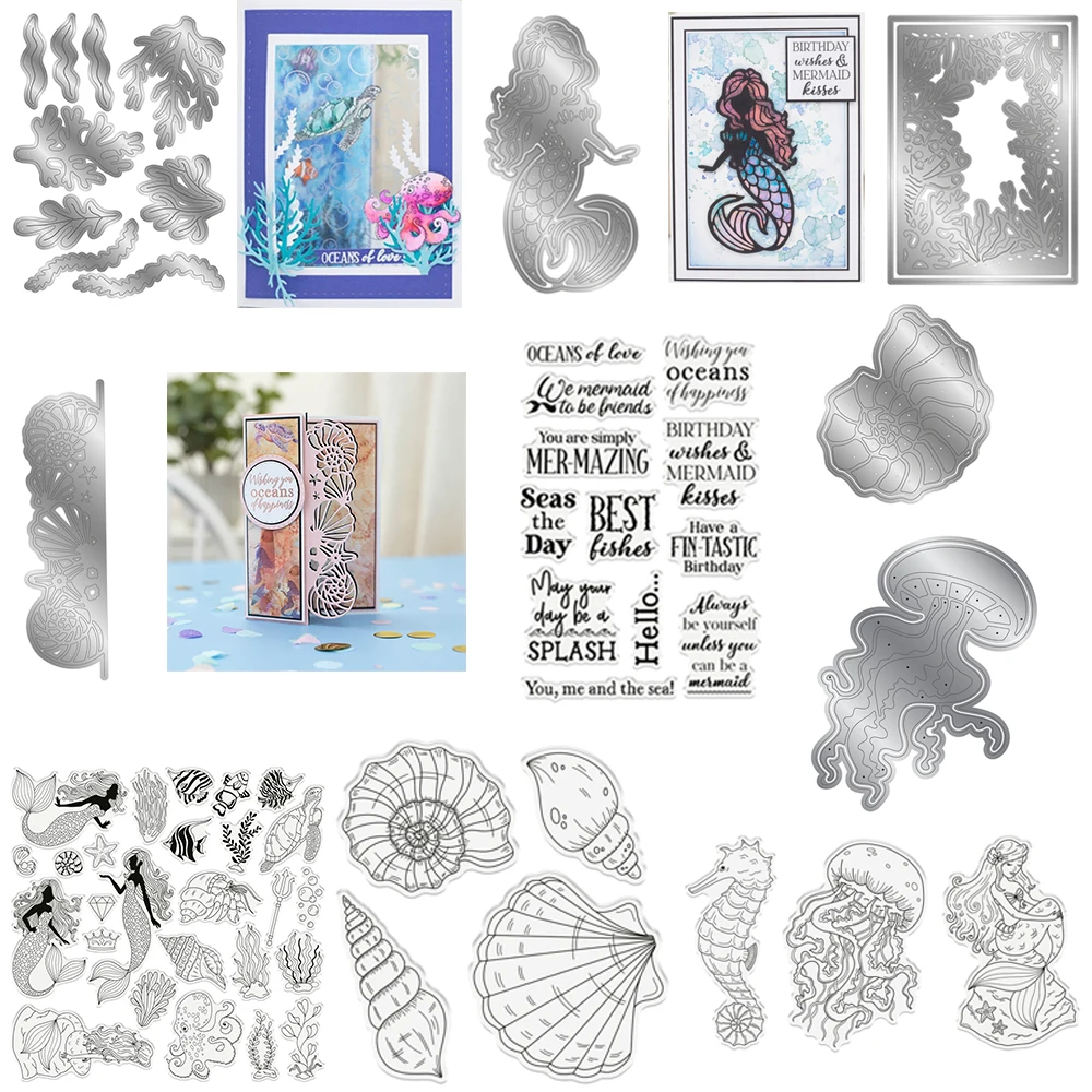 Enchanted Ocean Collection Stanzformen und Stempel, Meerjungfrau, Muschel, Oktopus, gestanzter Stemp...