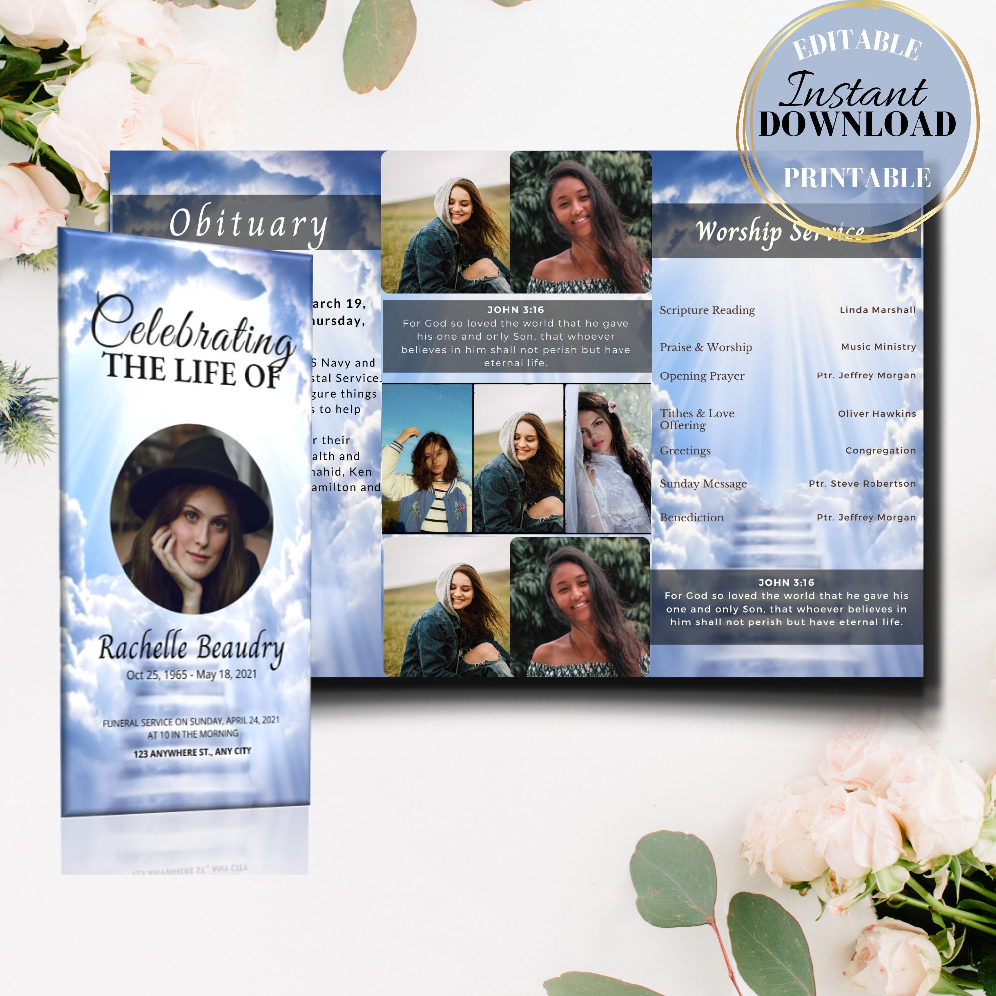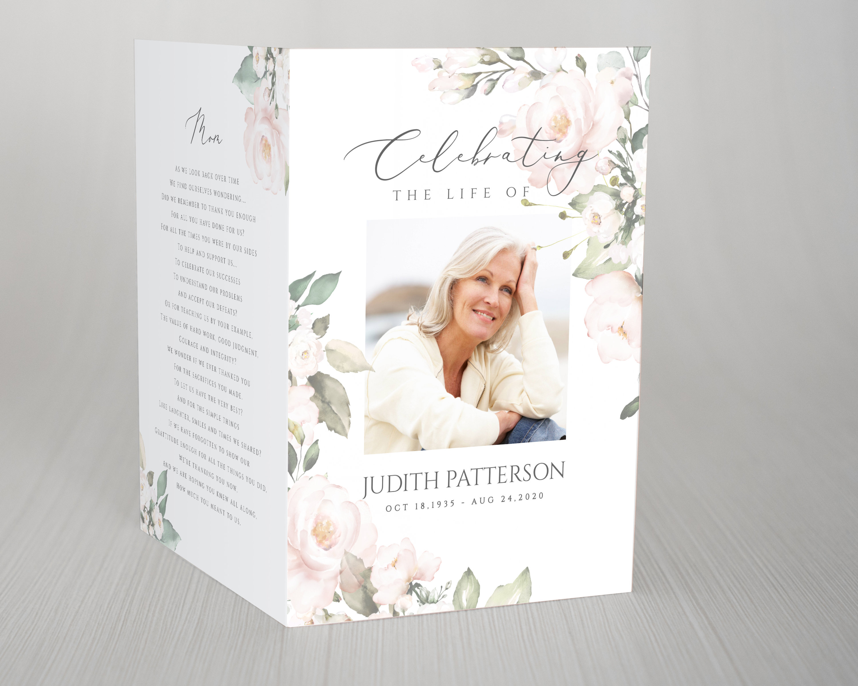 Blush Floral Beerdigung Programm Vorlage Floral Feiern das Leben de...