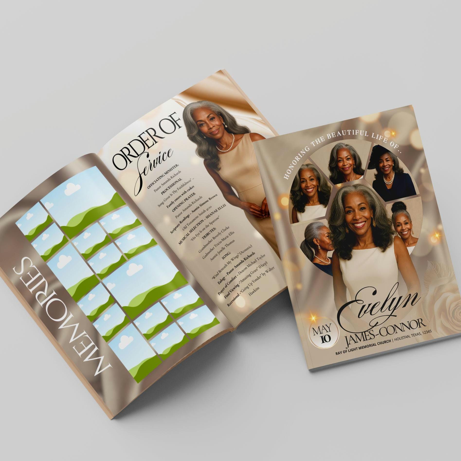 11x17 Gold Beerdigung Programm Vorlage| Beige Tabloid Bifold Funera...